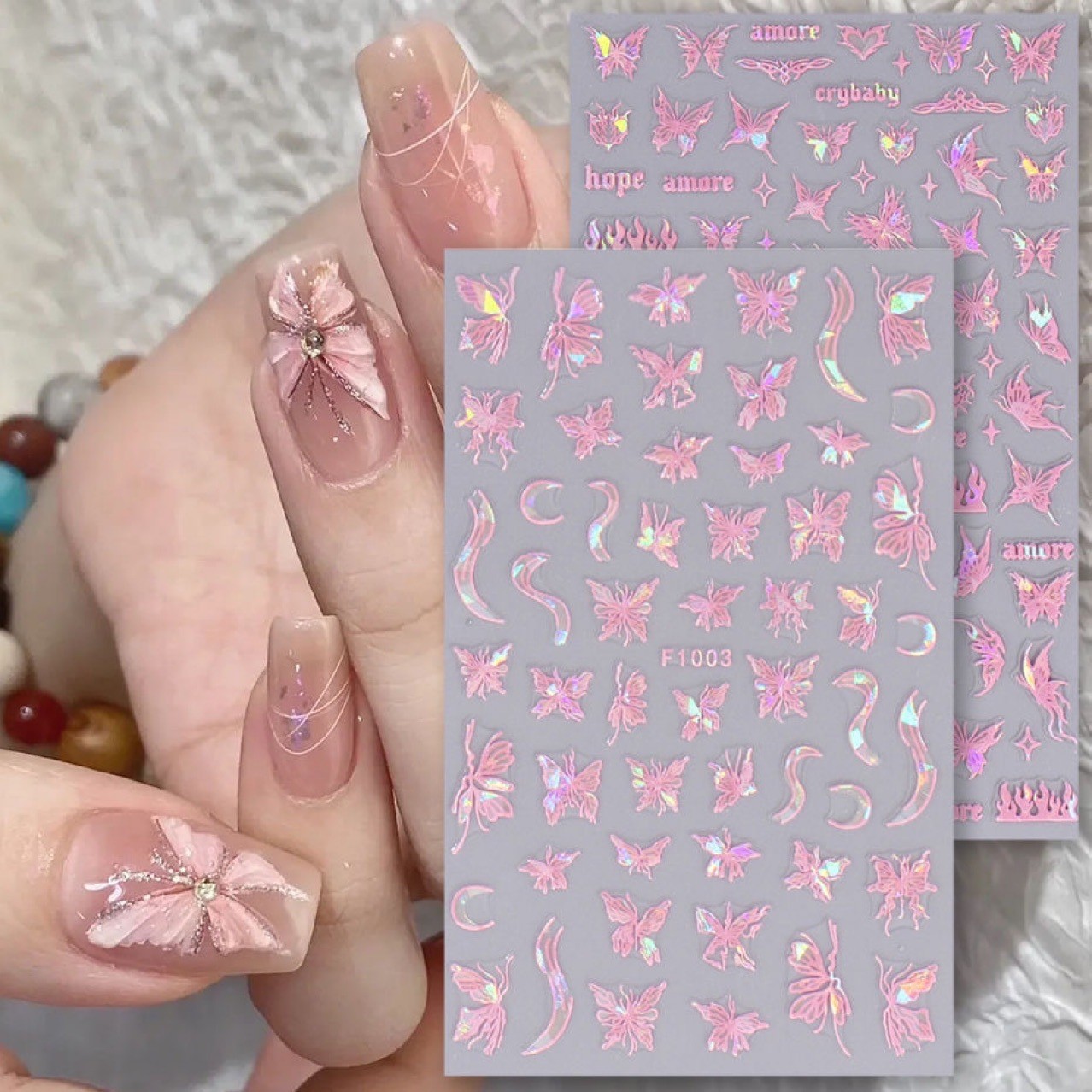 새 네일 스티커 도매 레이저 바비 파우더 오로라 우아한 나비 껌 스타 달 네일 스티커스토어 가기