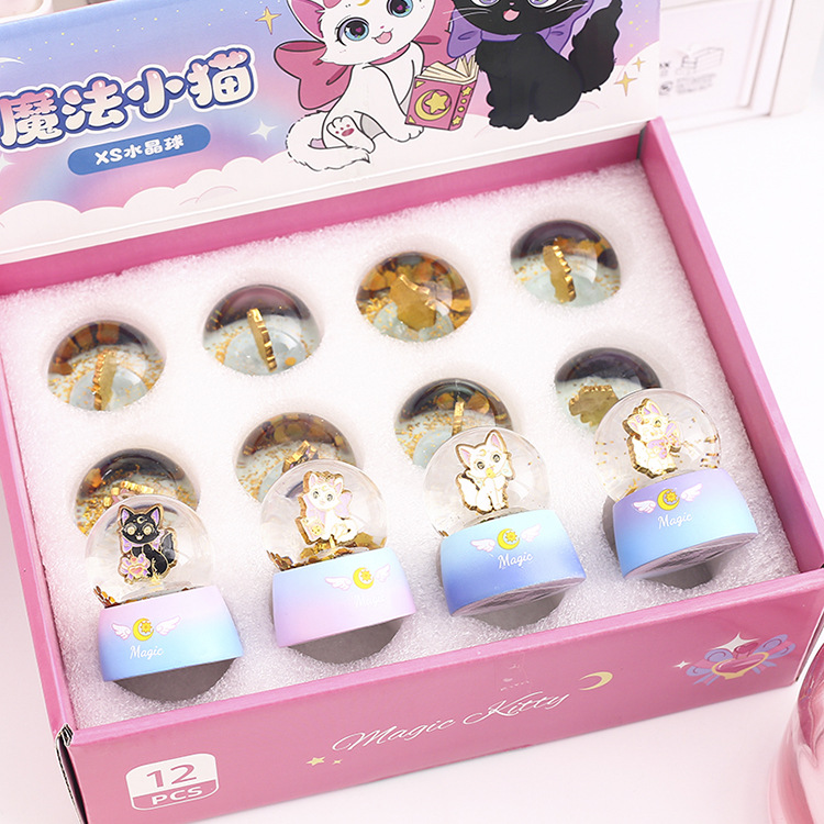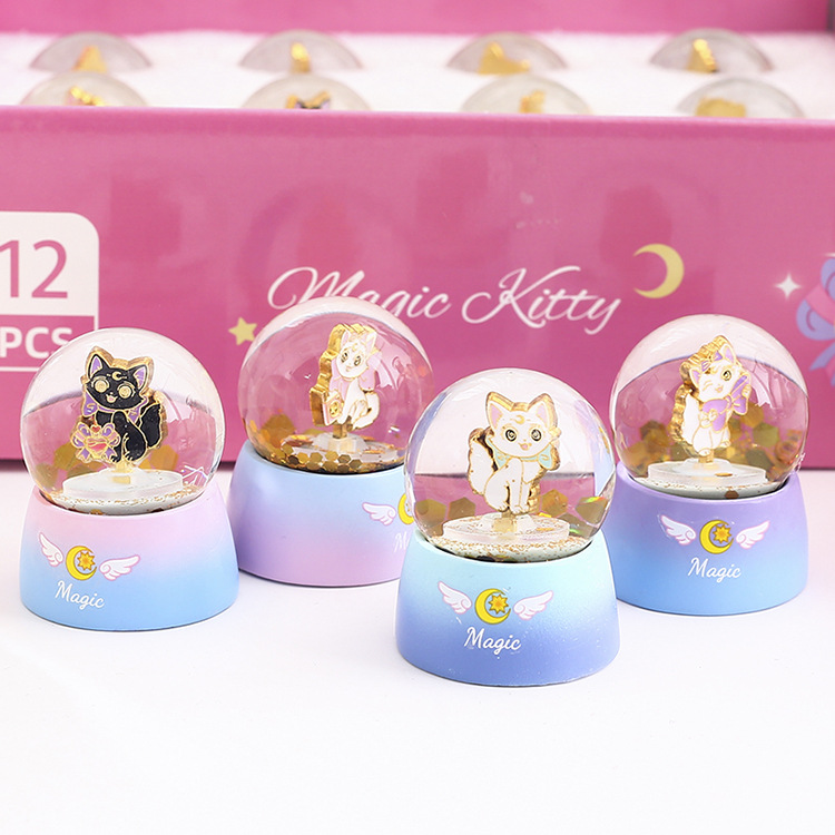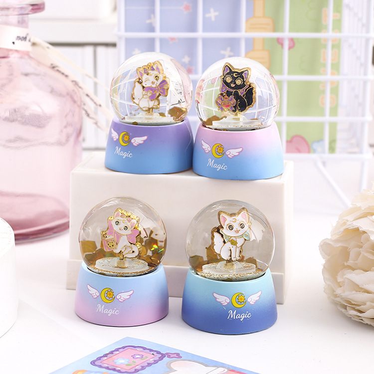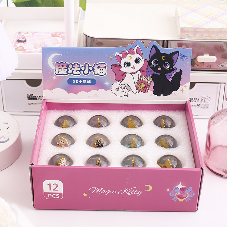 매직 새끼 고양이 크리스탈 볼 XS 만화 귀여운 데스크탑 크리스탈 볼 장식품 어린이 귀여운 미니 생일 선물