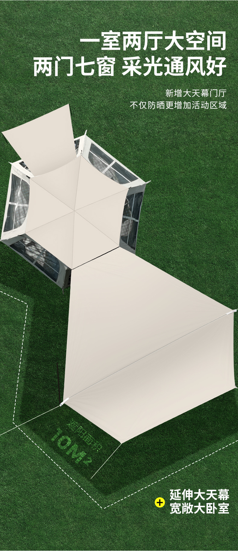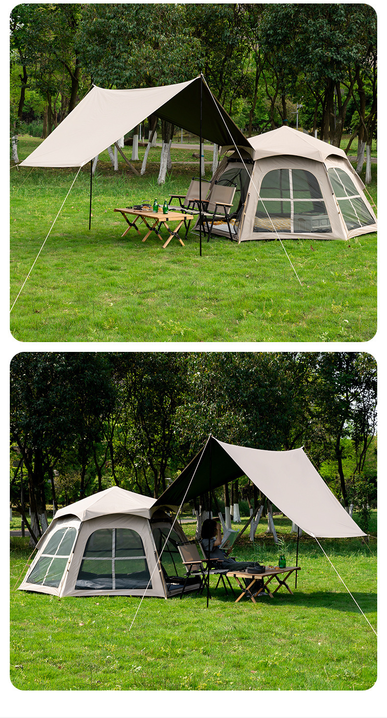 텐트 야외 접는 육각형 태양 보호 공원 통합 하늘 커튼 캠핑 하룻밤 캠핑 두꺼운 검은 방수 고무 텐트