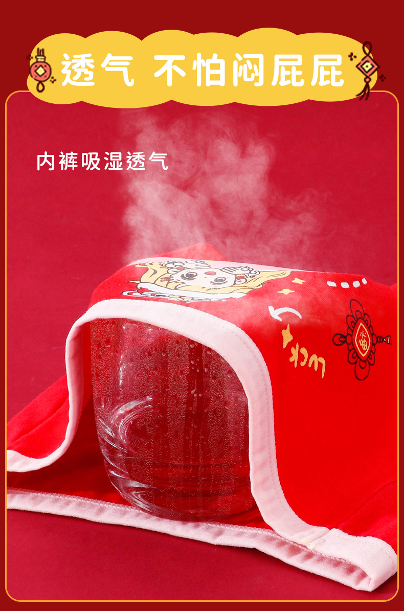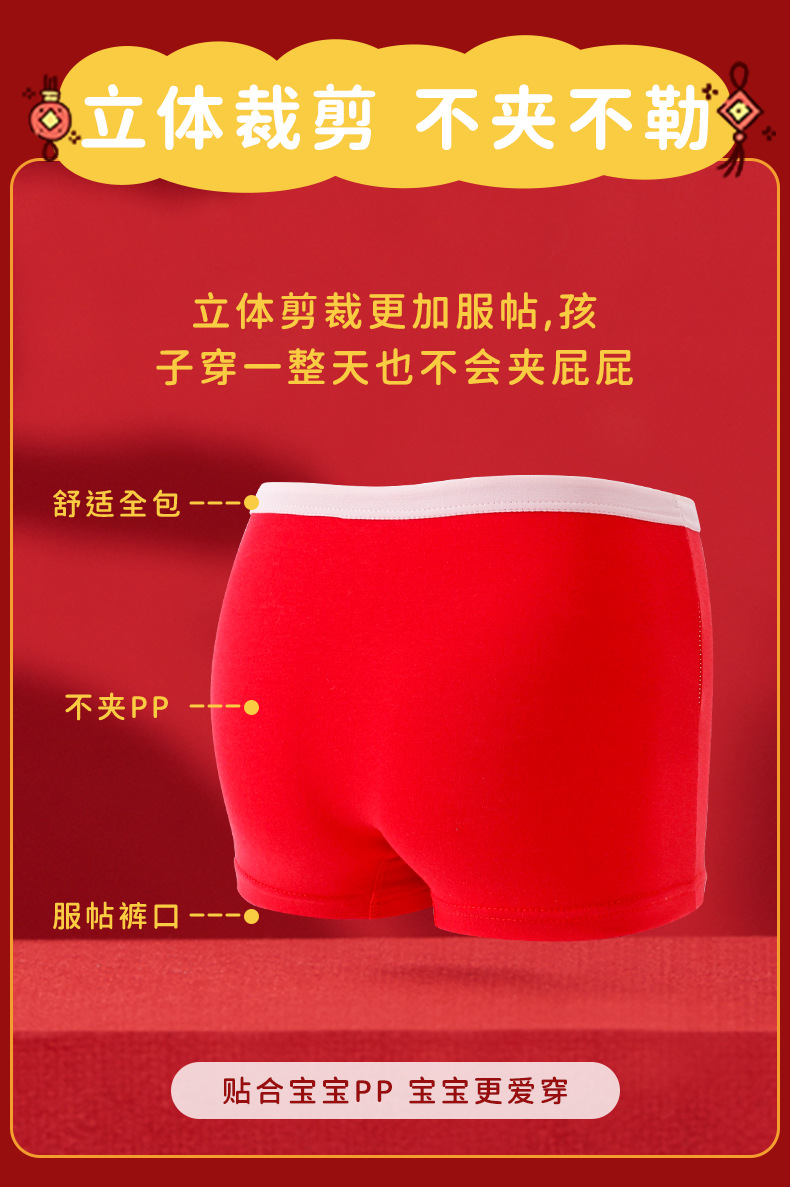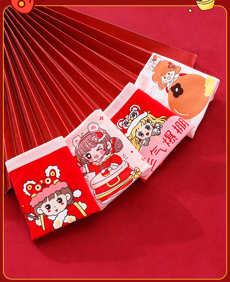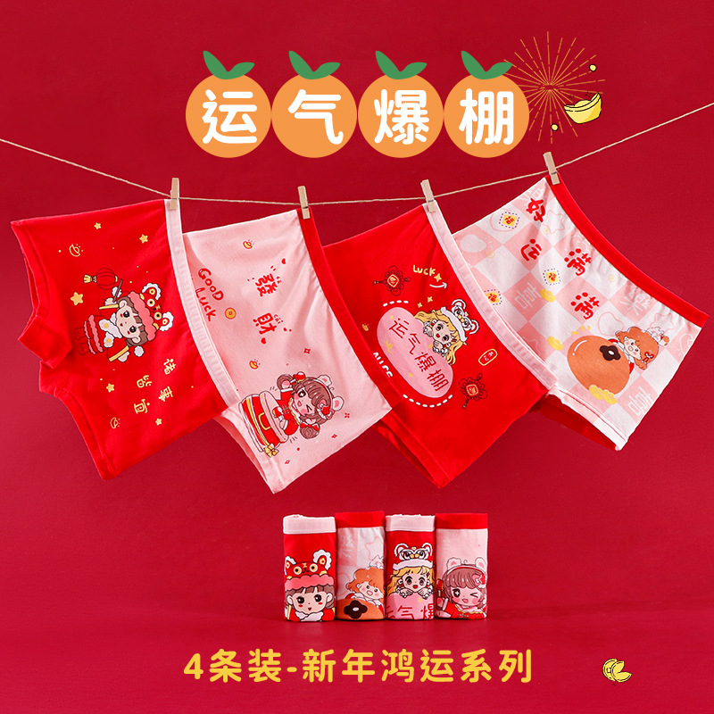구정 스타일 신년 소녀의 순수한 면화 복서 브리프 빅 레드 축제 좋은 행운 어린이 바지
