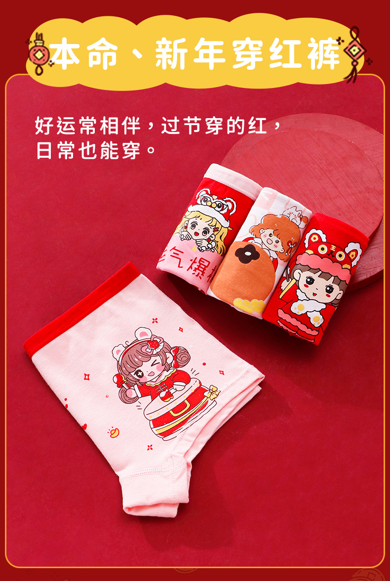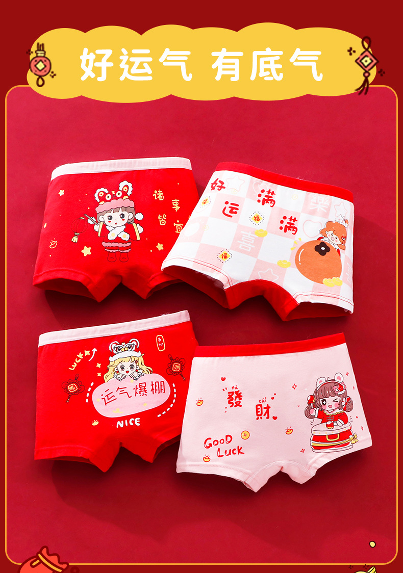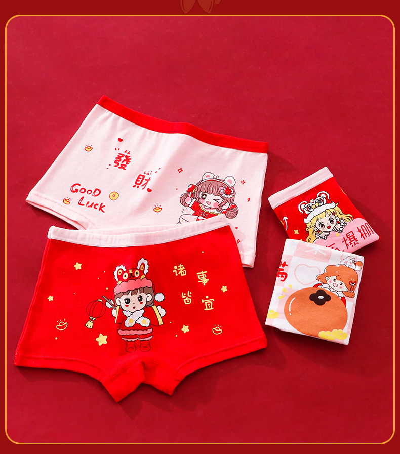 구정 스타일 신년 소녀의 순수한 면화 복서 브리프 빅 레드 축제 좋은 행운 어린이 바지스토어 가기