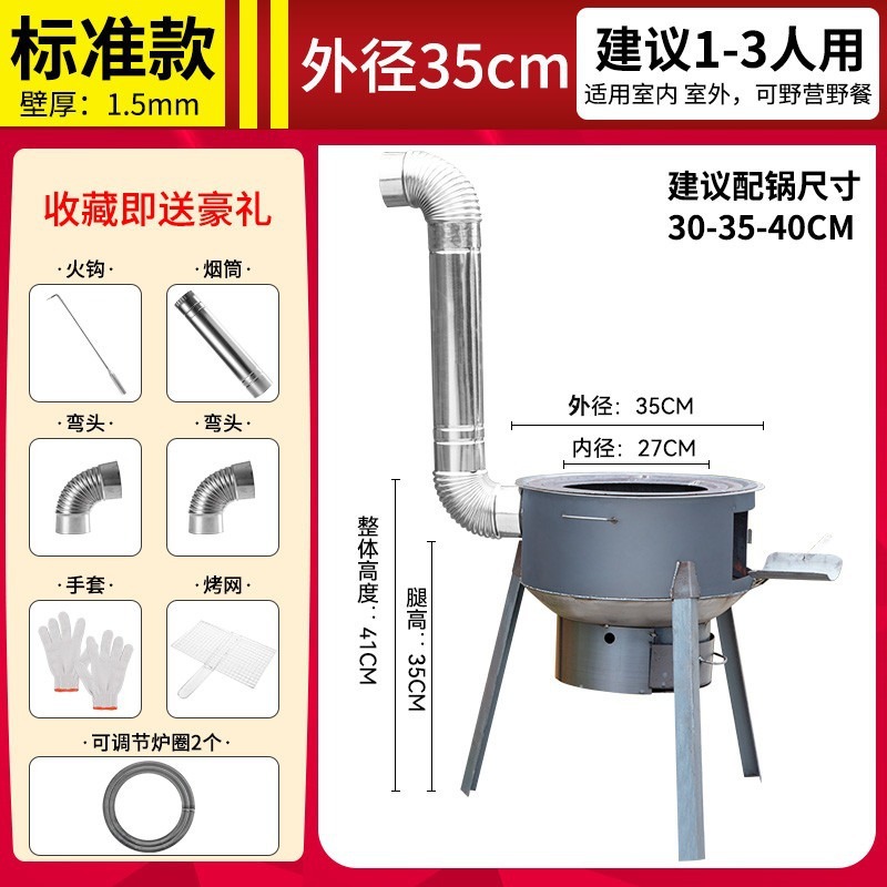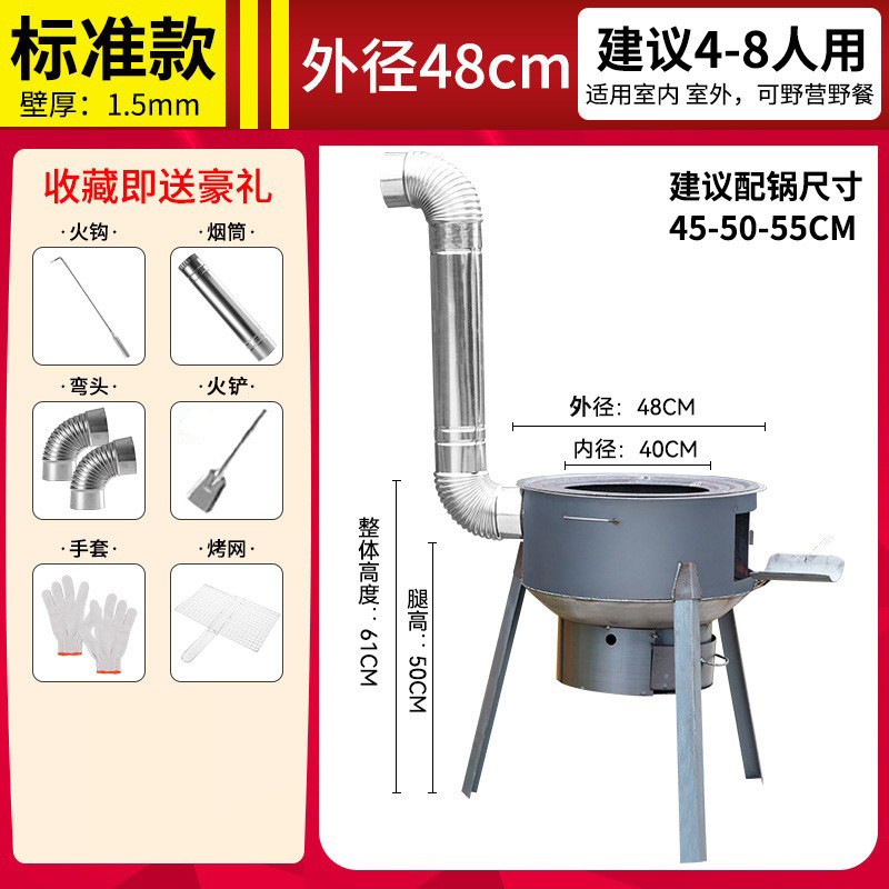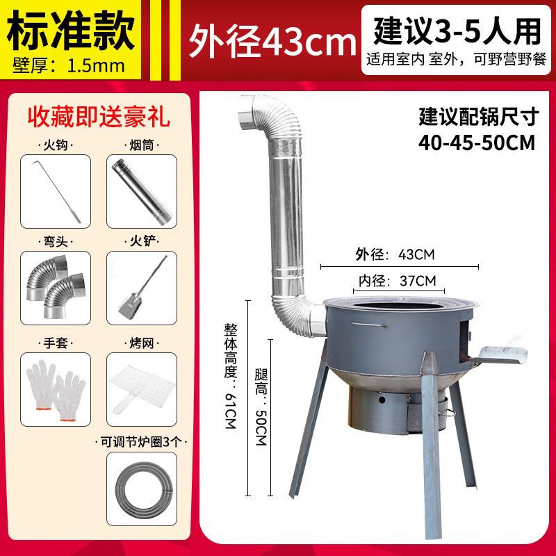 • 직경 43CM의 두꺼운 스토브 + 굴뚝 선물 패키지(링 없음) - 일체형 조립 장작 난로 [강판]