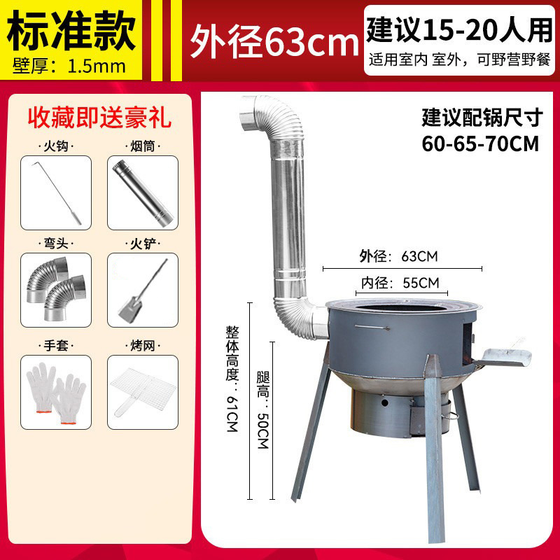 • 직경 63CM 난로 특후 패키지 + 굴뚝 선물 패키지(링 없음) - 일체형 조립 장작 난로 [강판]