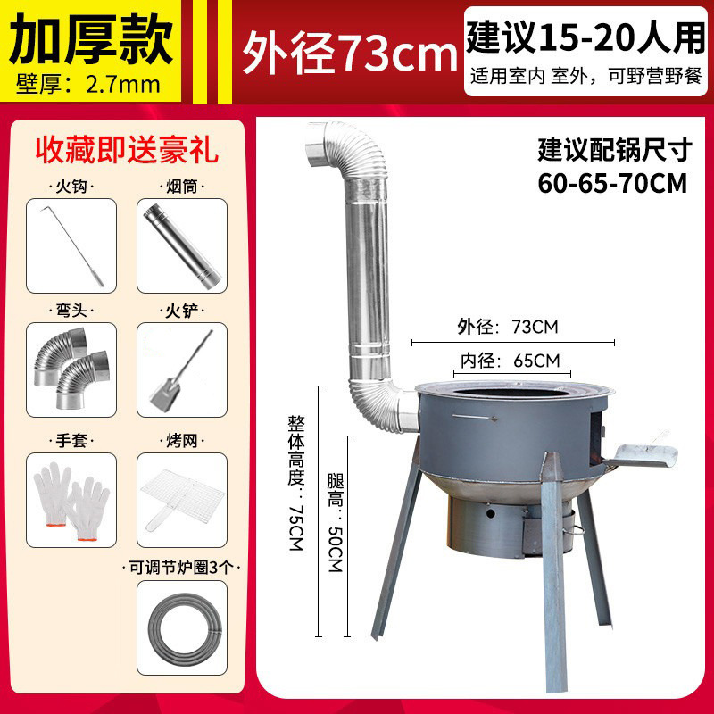 • 직경 73CM의 매우 두껍고 확대된 스토브 + 굴뚝 선물 팩이 포함된 스토브 링 3개 - 일체형 조립 장작 난로 [강판]
