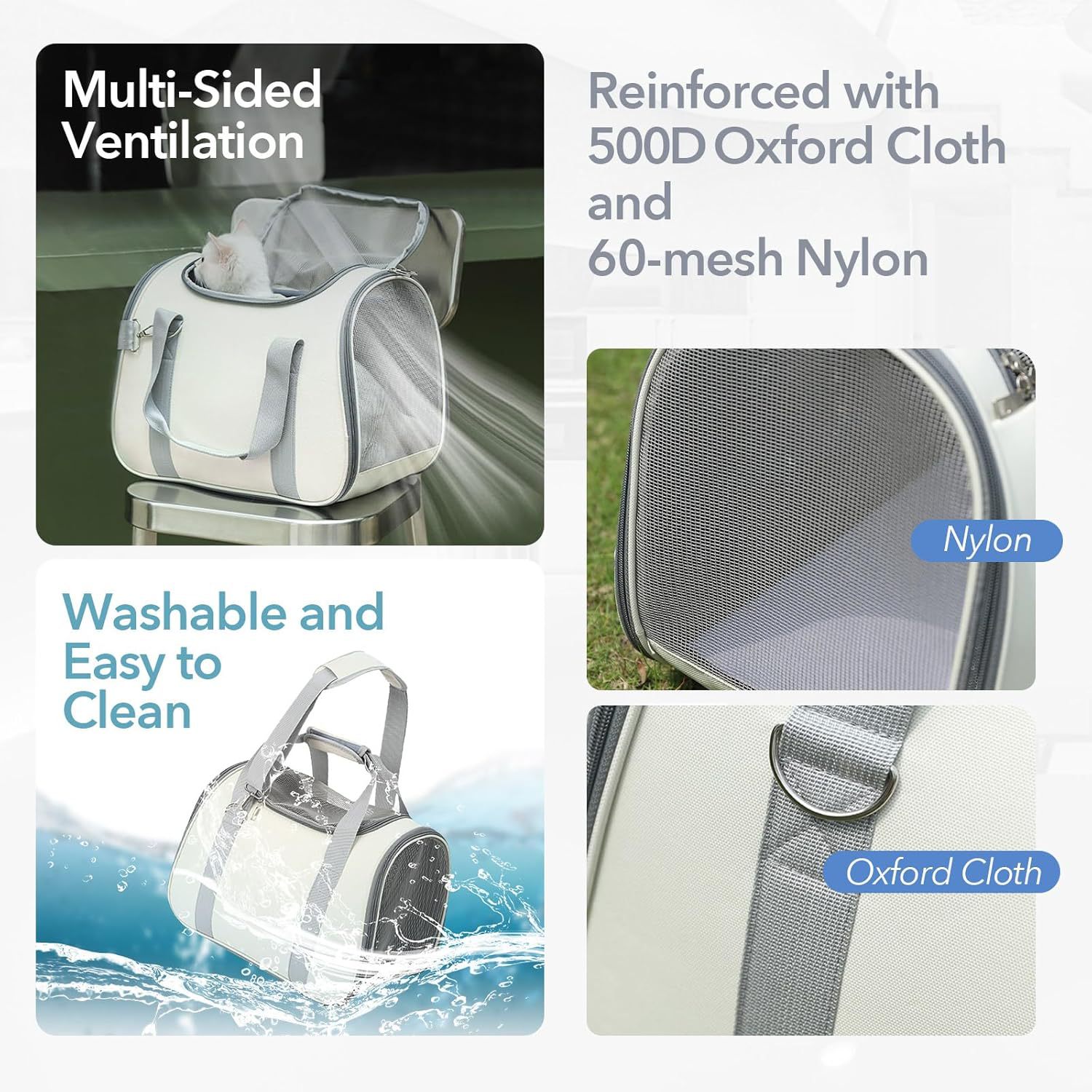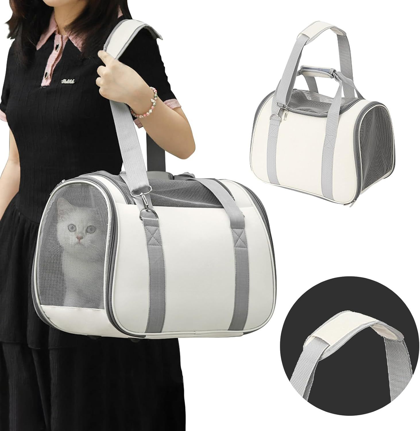 通风良好:两侧采用透气网布,让空气流通,让你的小宠物在旅途中保持凉爽。