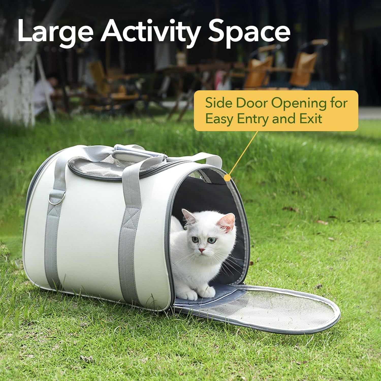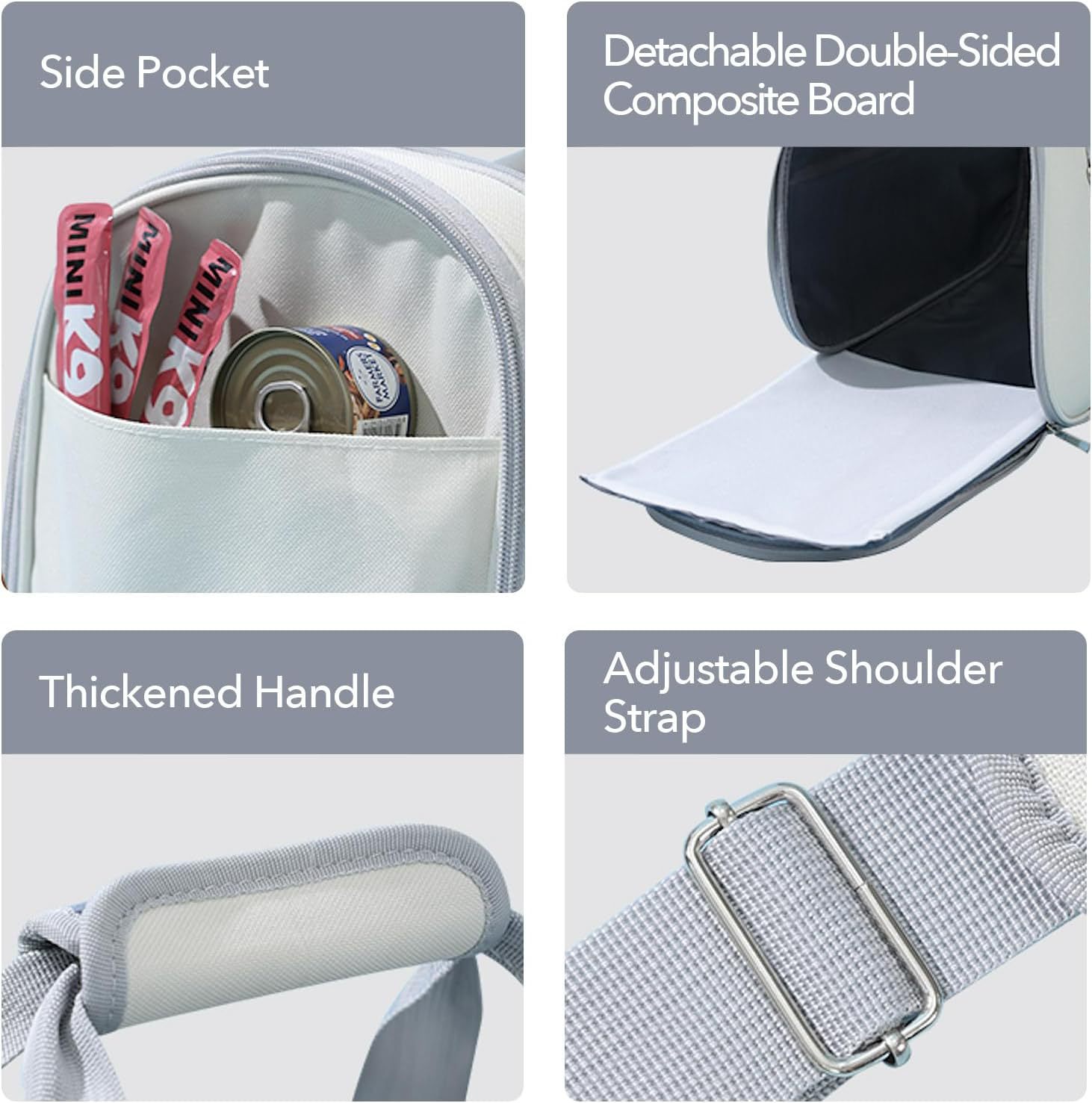 方便出入:侧门设计为您的宠物提供了简单的出入口,侧袋可存放必需品。
