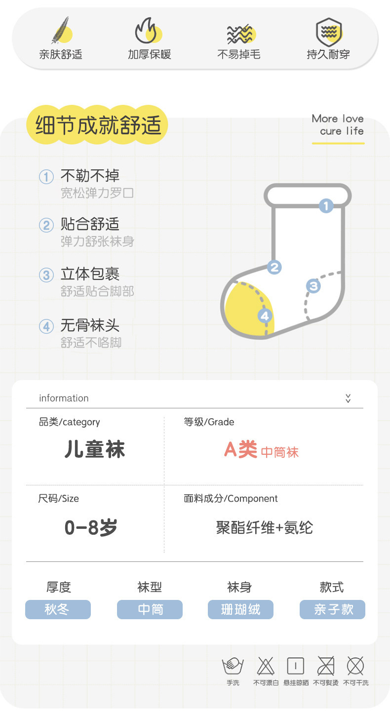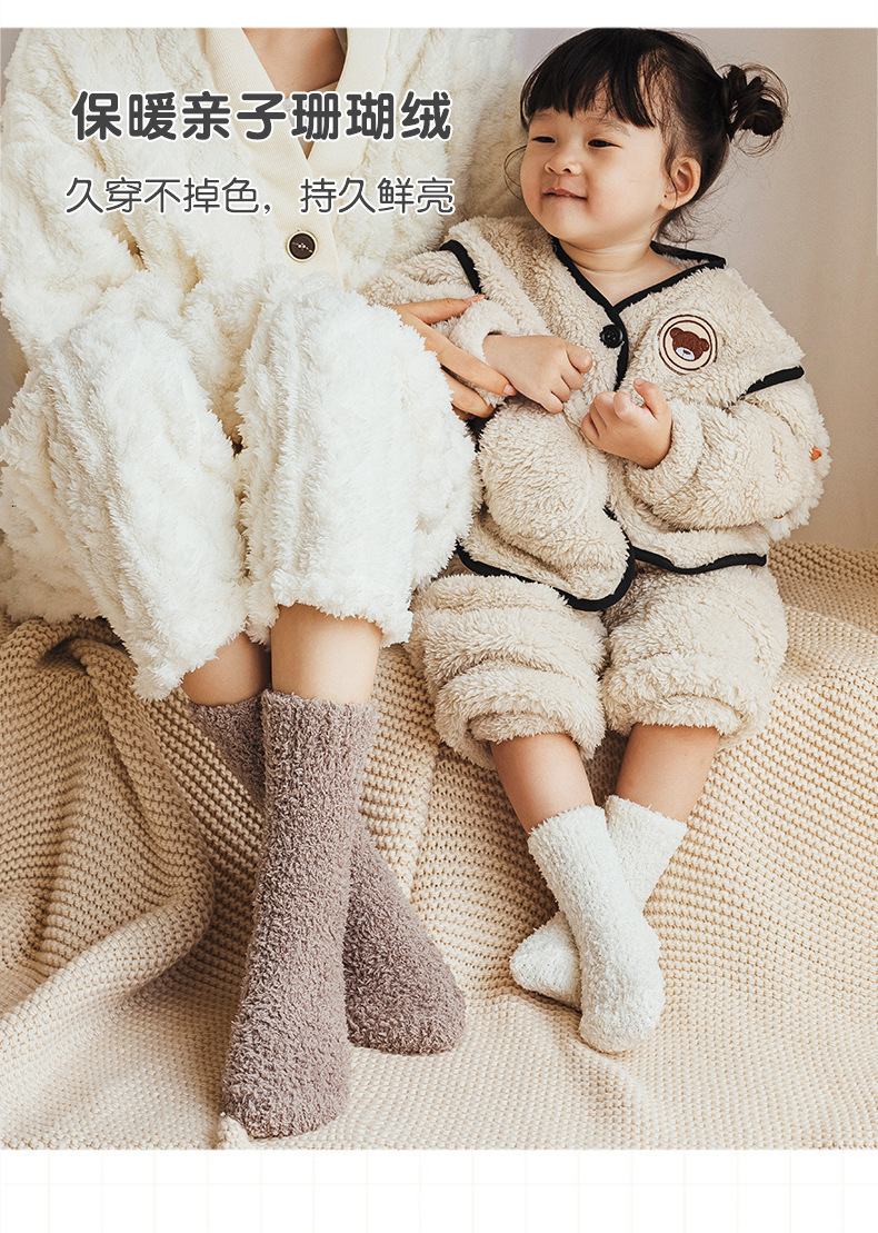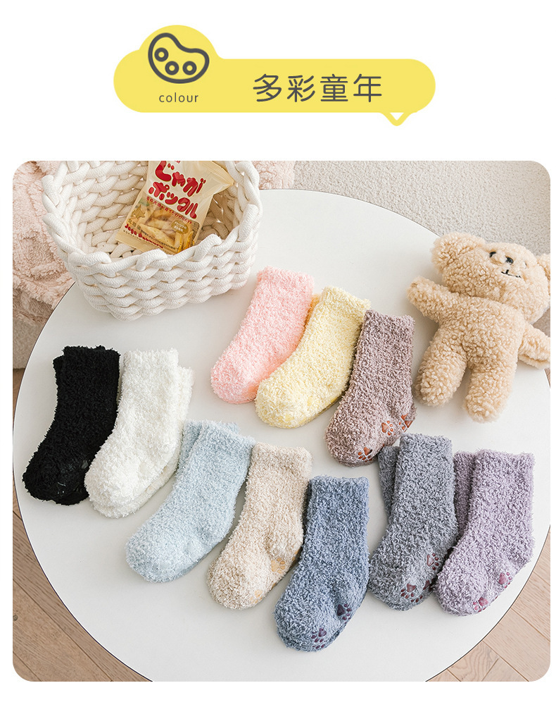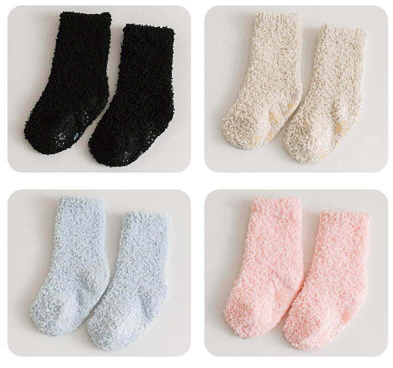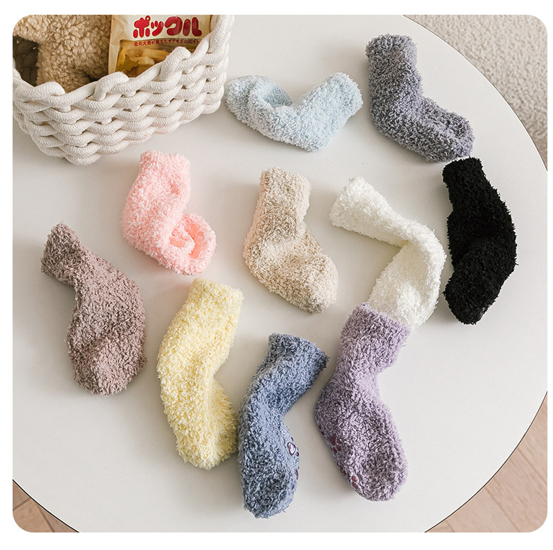 어린이 산호 양털 양말 겨울 바닥 양말 발 슬리퍼 미끄럼 방지 어린이 양말 두꺼운 따뜻한 중간 튜브 아기 양말