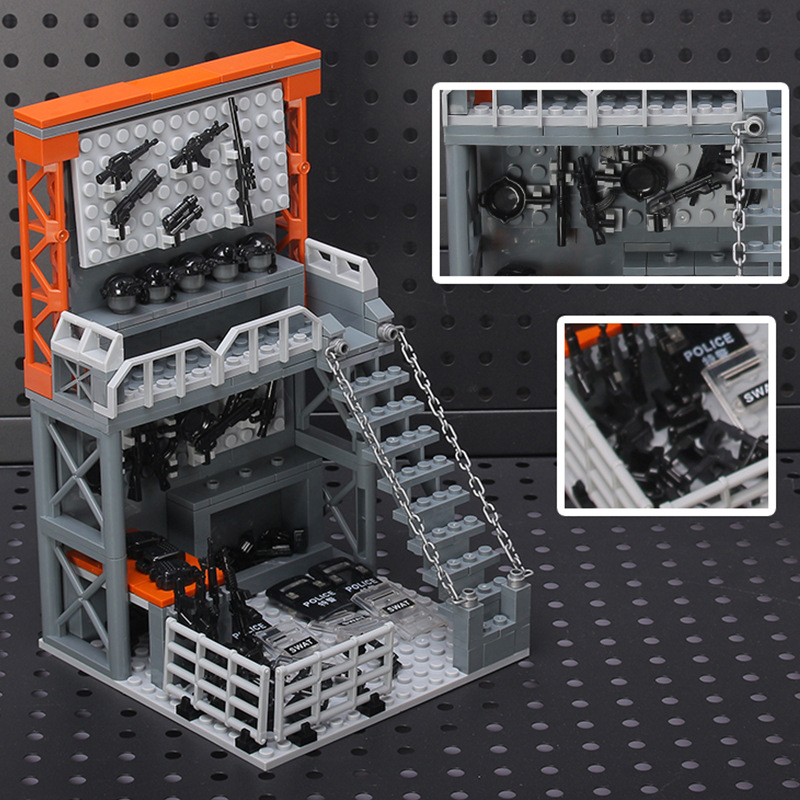 국경 간 뜨거운 판매 군사 기지 총기 아스날 아스날 빌딩 블록 모델 MOC 장면 DIY 조립 장난감