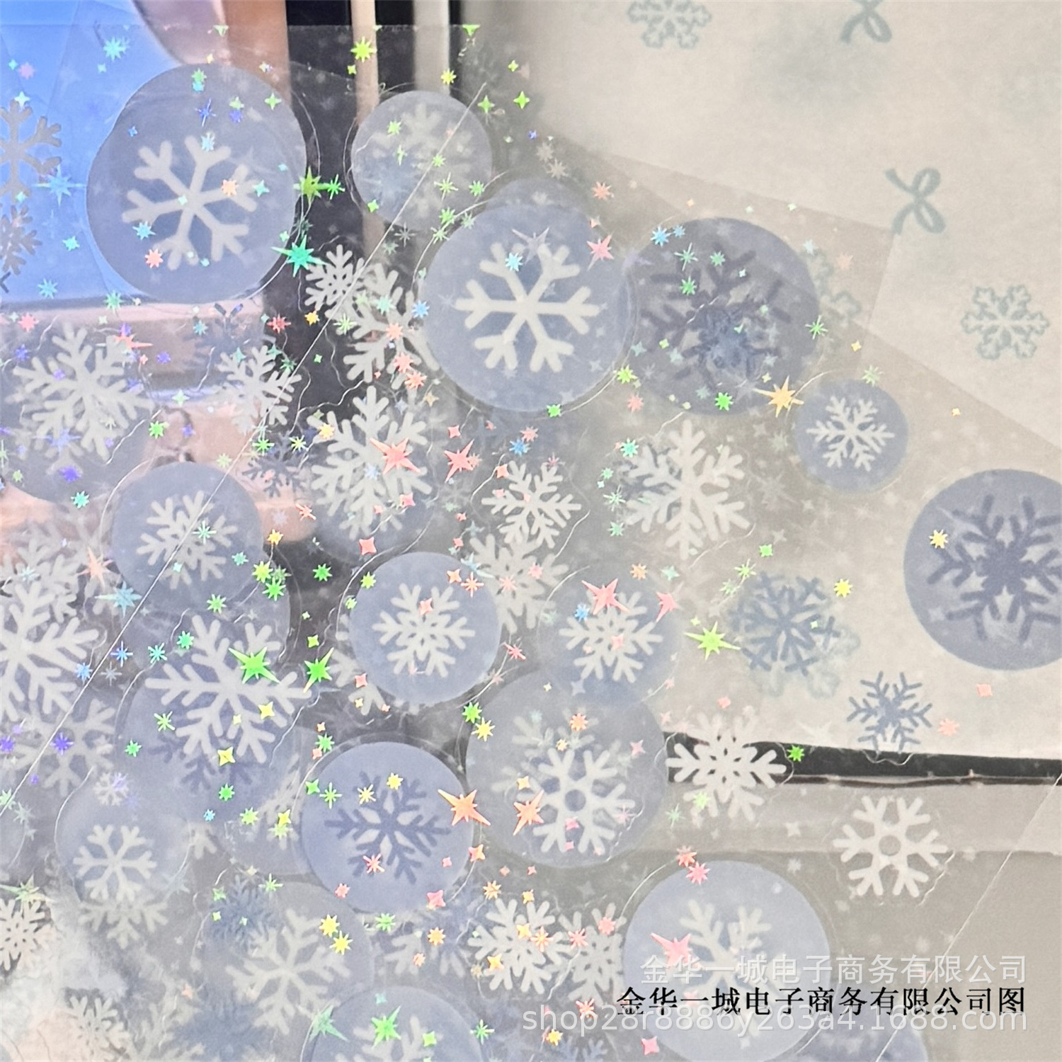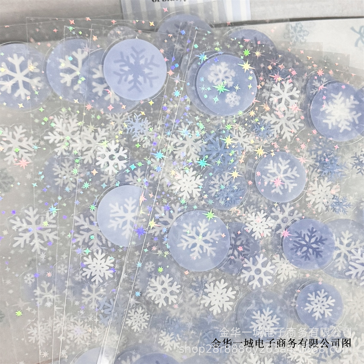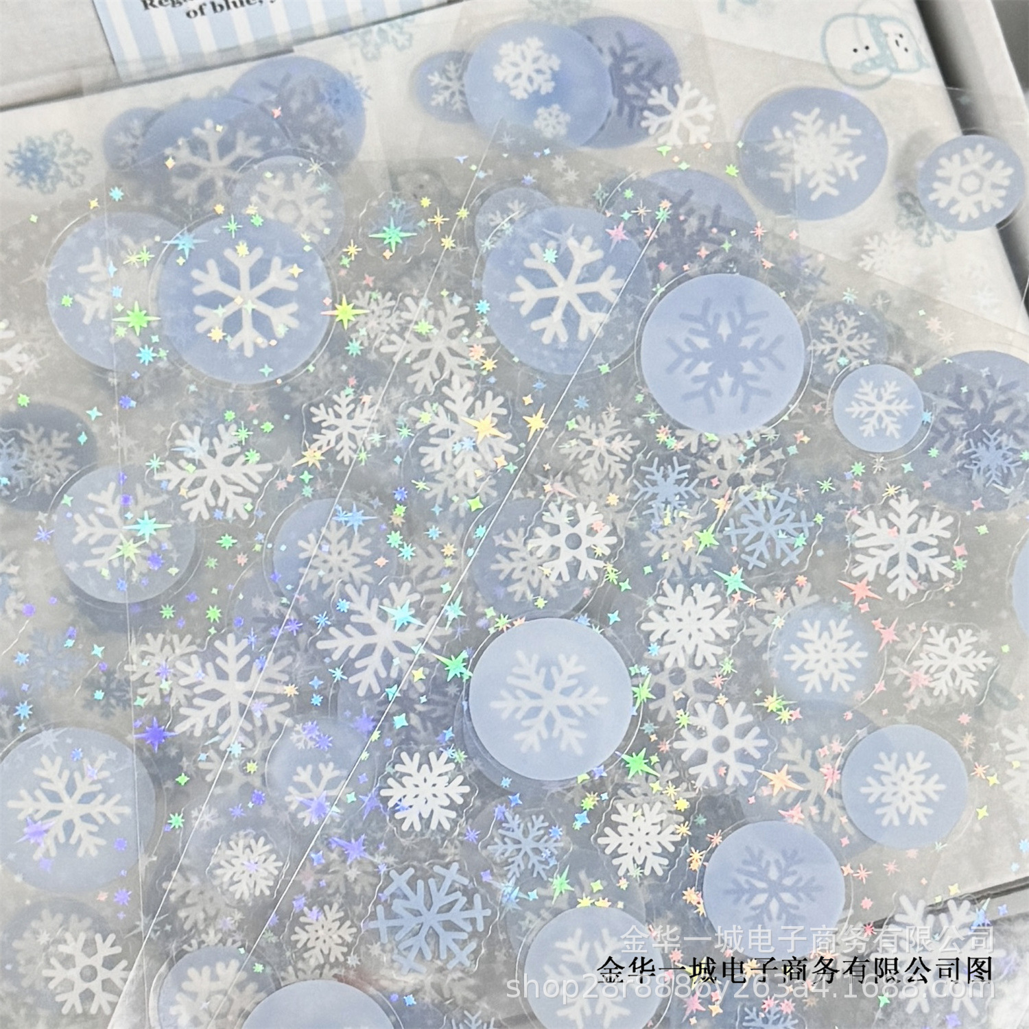 고급스러운 파란색과 흰색 눈송이 컷 필름 스티커 diy 핸드북 장식 재료 겨울 분위기 방수 스티커 저렴한 가격스토어 가기
