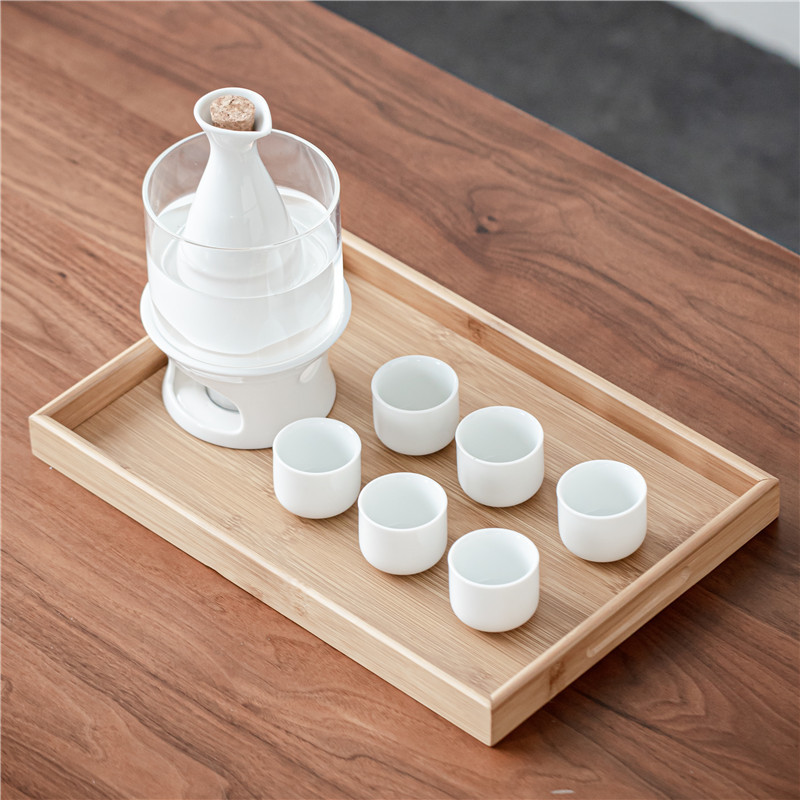 일본식 와인 따뜻한 매트 뚱뚱한 옥 도자기 끓는 와인 세트 쌀 와인 뜨거운 끓는 냄비 가정용 주류 유리 주류 와인 세트
