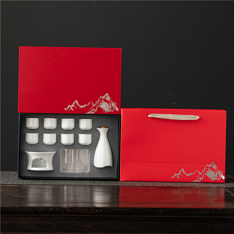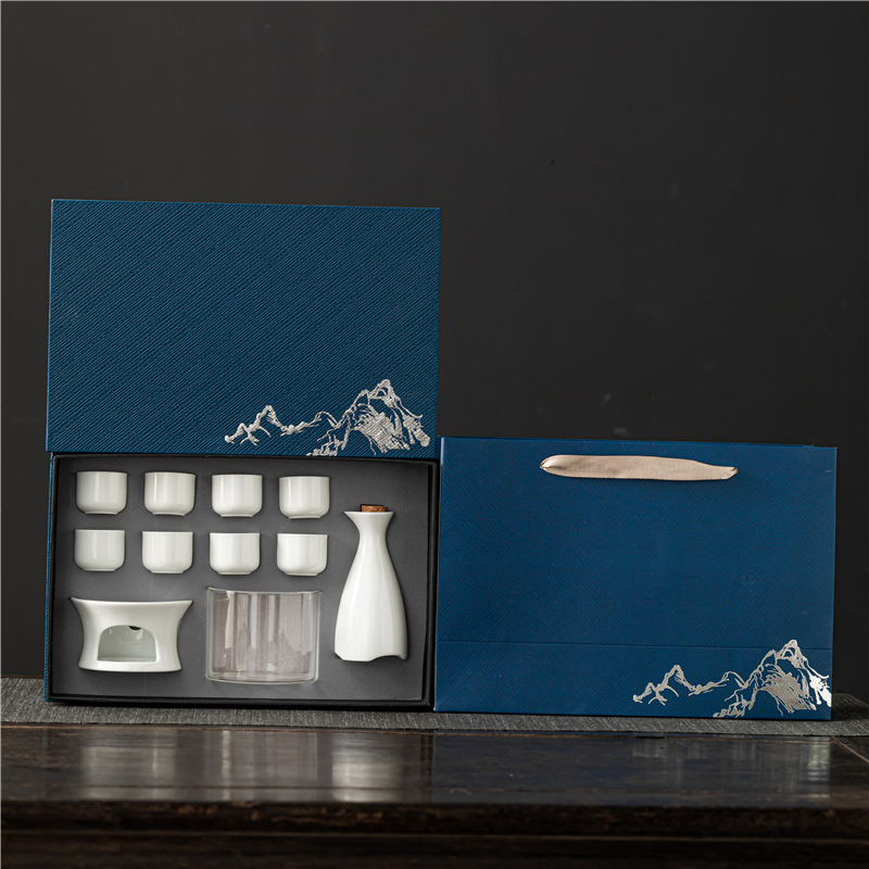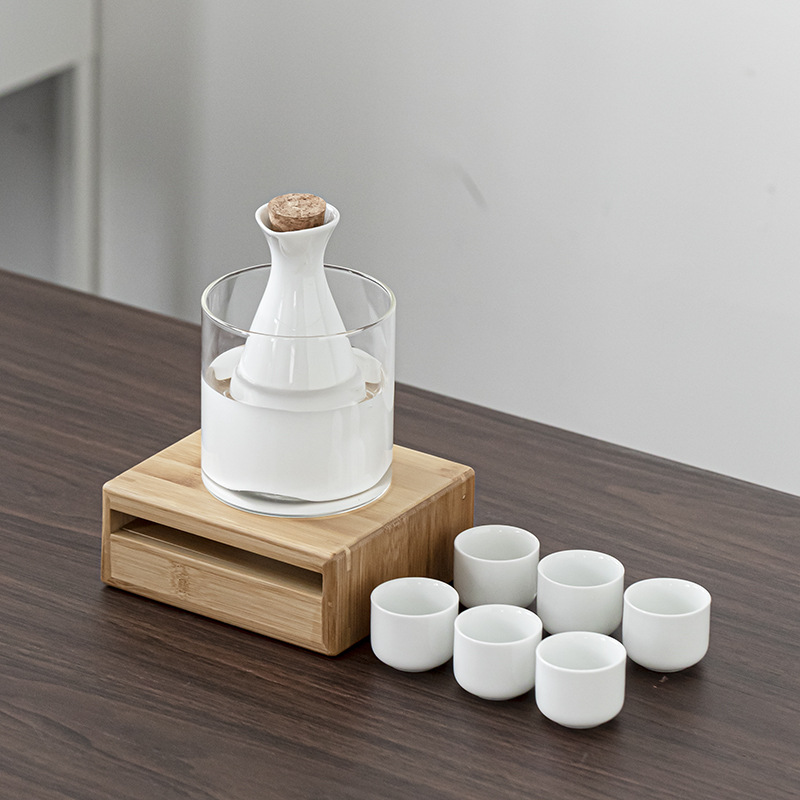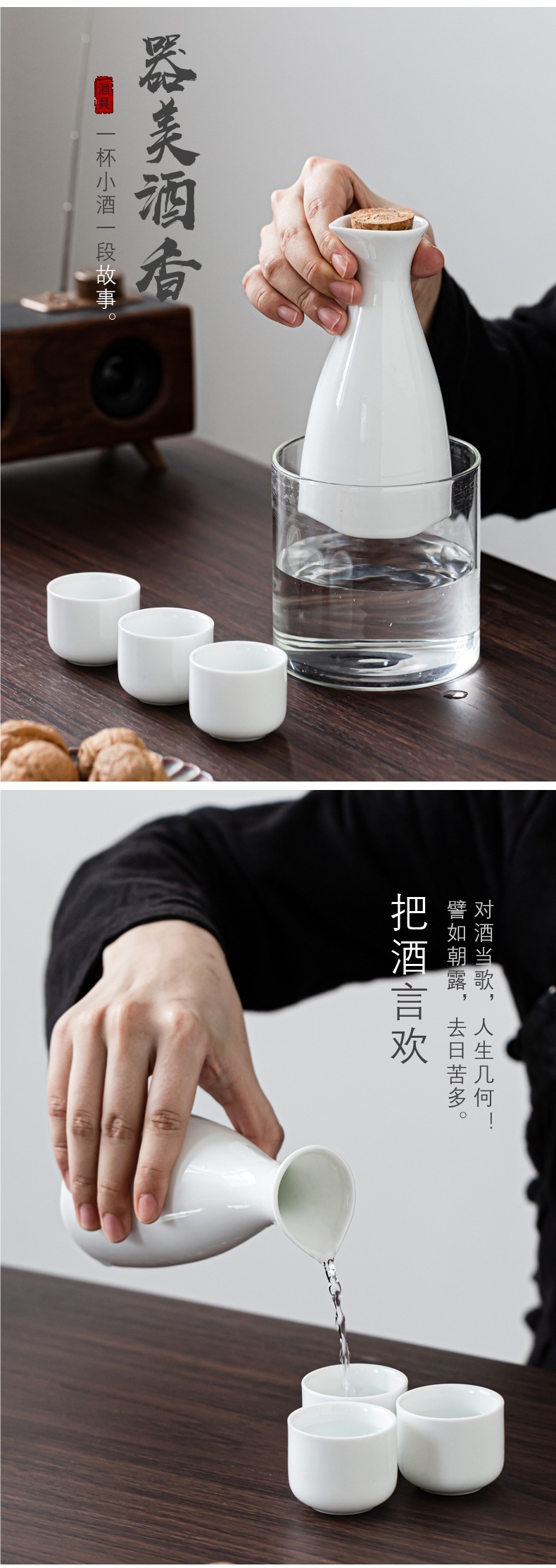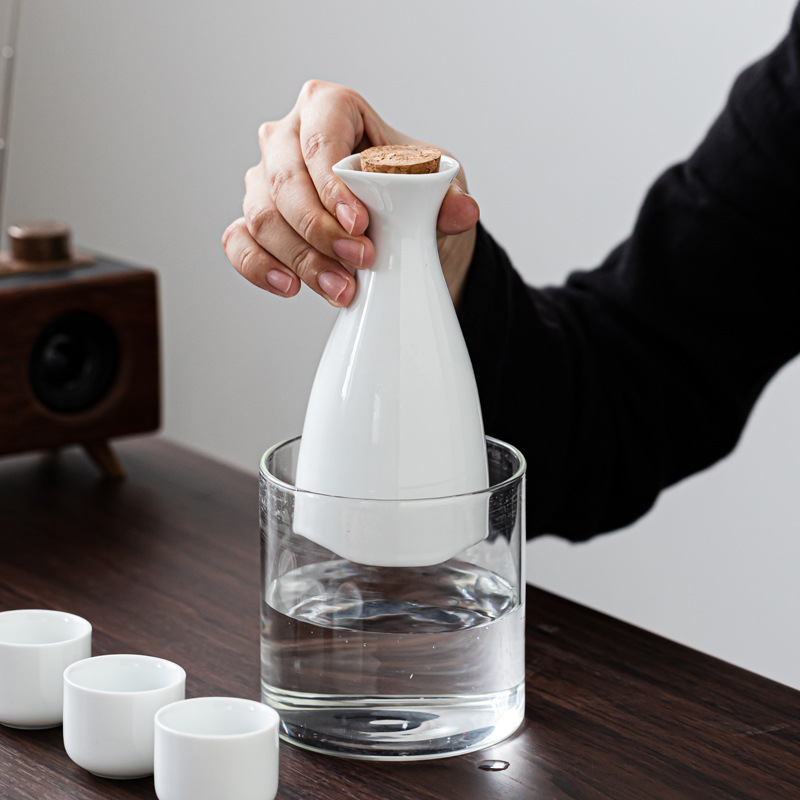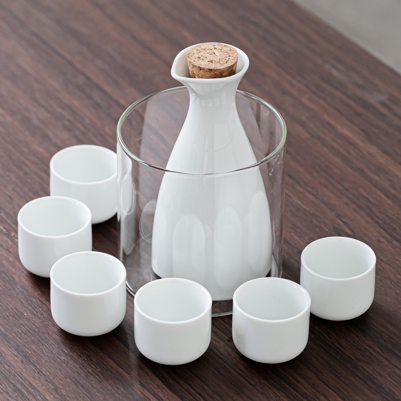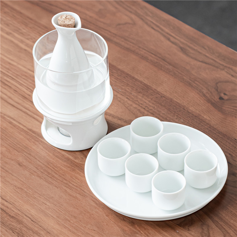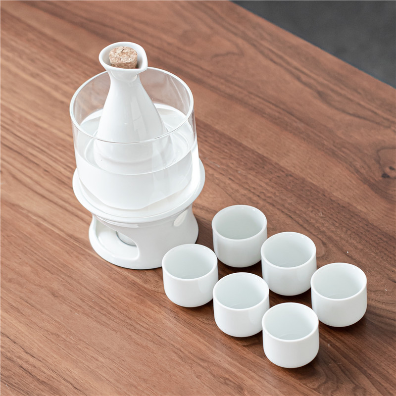 일본식 와인 따뜻한 매트 뚱뚱한 옥 도자기 끓는 와인 세트 쌀 와인 뜨거운 끓는 냄비 가정용 주류 유리 주류 와인 세트스토어 가기