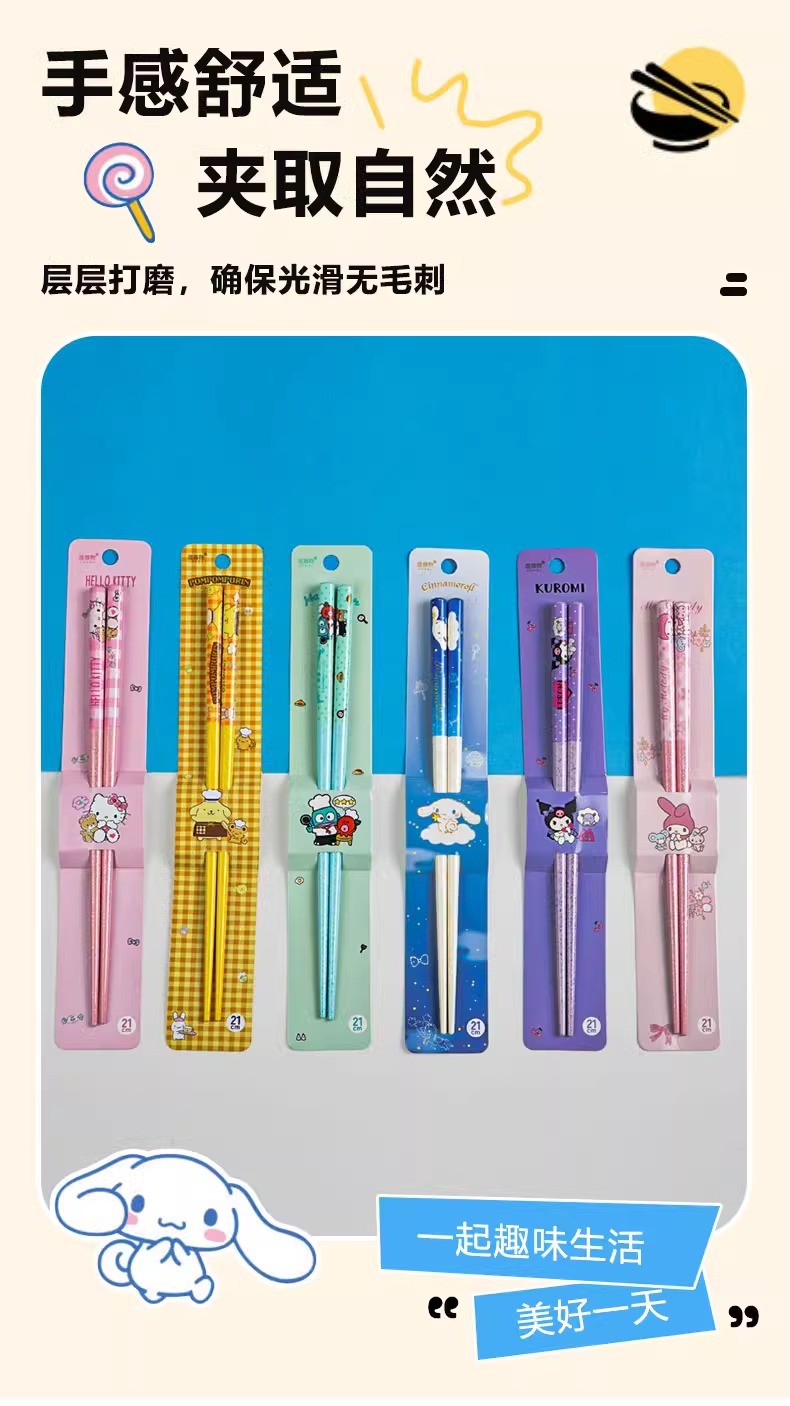 산리오 정품 귀여운 만화 소녀의 심장 부드러운 자연 대나무 나무 비 슬립 가정용 젓가락 식기 높은 모양 귀여운스토어 가기