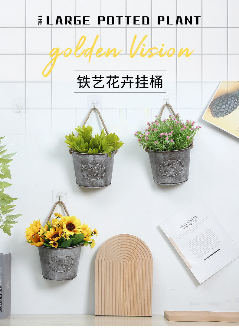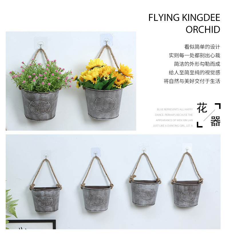 레트로 철제 벽걸이 화분, 발코니 다육 식물 걸이 화분, 홈 크리에이티브 드라이 플라워 장식 펜던트, 걸이 바구니 꽃 용기스토어 가기