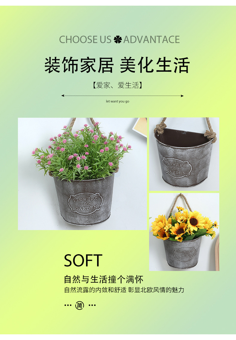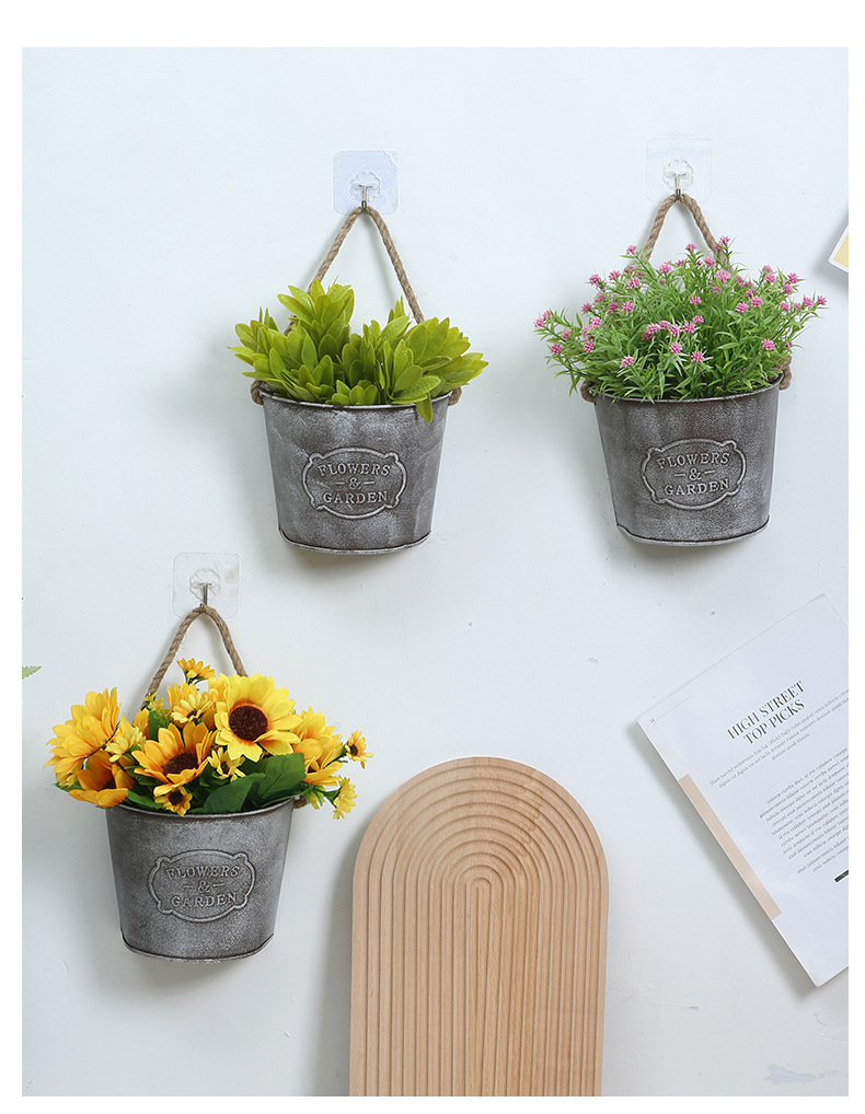 레트로 철제 벽걸이 화분, 발코니 다육 식물 걸이 화분, 홈 크리에이티브 드라이 플라워 장식 펜던트, 걸이 바구니 꽃 용기