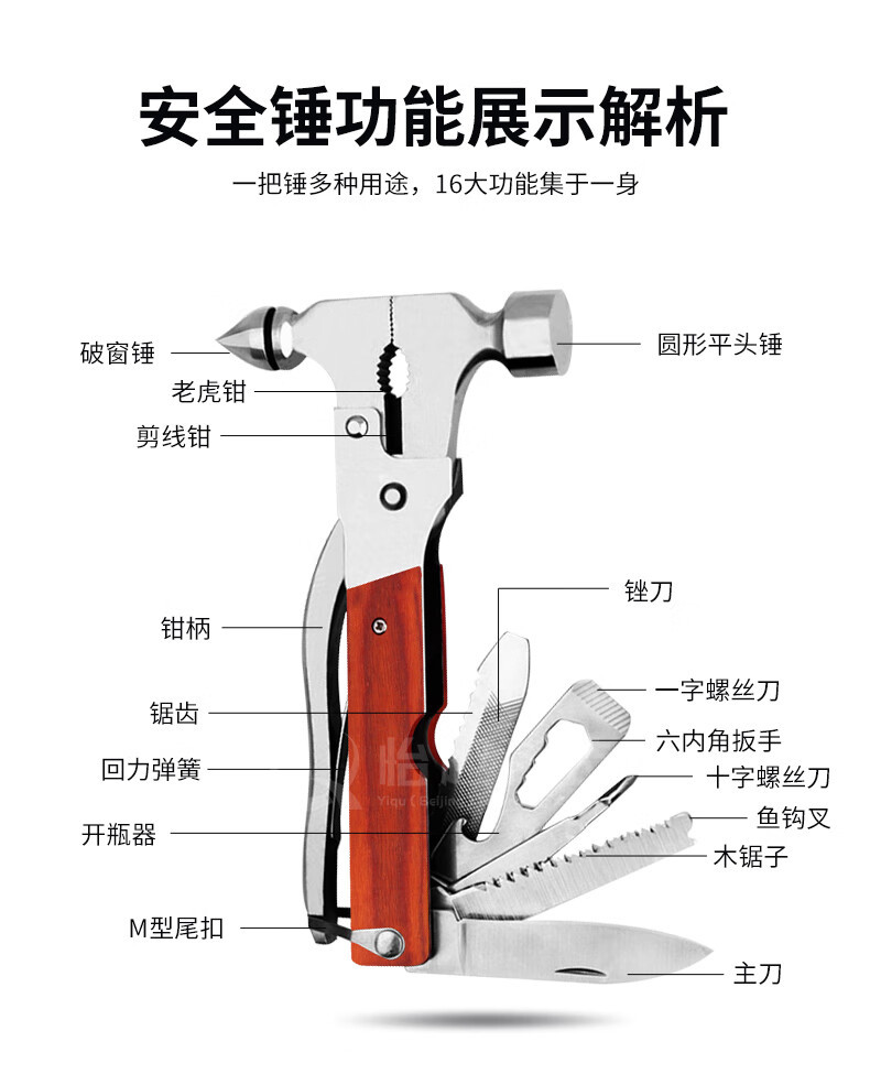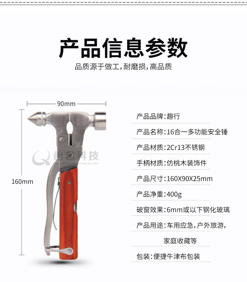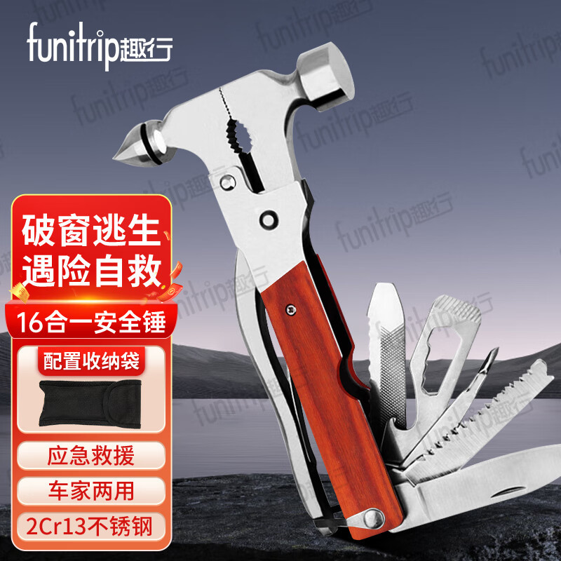 Quxing 자동차 안전 해머 금속 다기능 16 in 1 자동차 이중 목적 구명 해머 도구 조합 강철스토어 가기