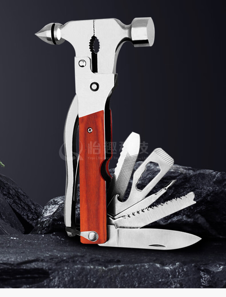 Quxing 자동차 안전 해머 금속 다기능 16 in 1 자동차 이중 목적 구명 해머 도구 조합 강철