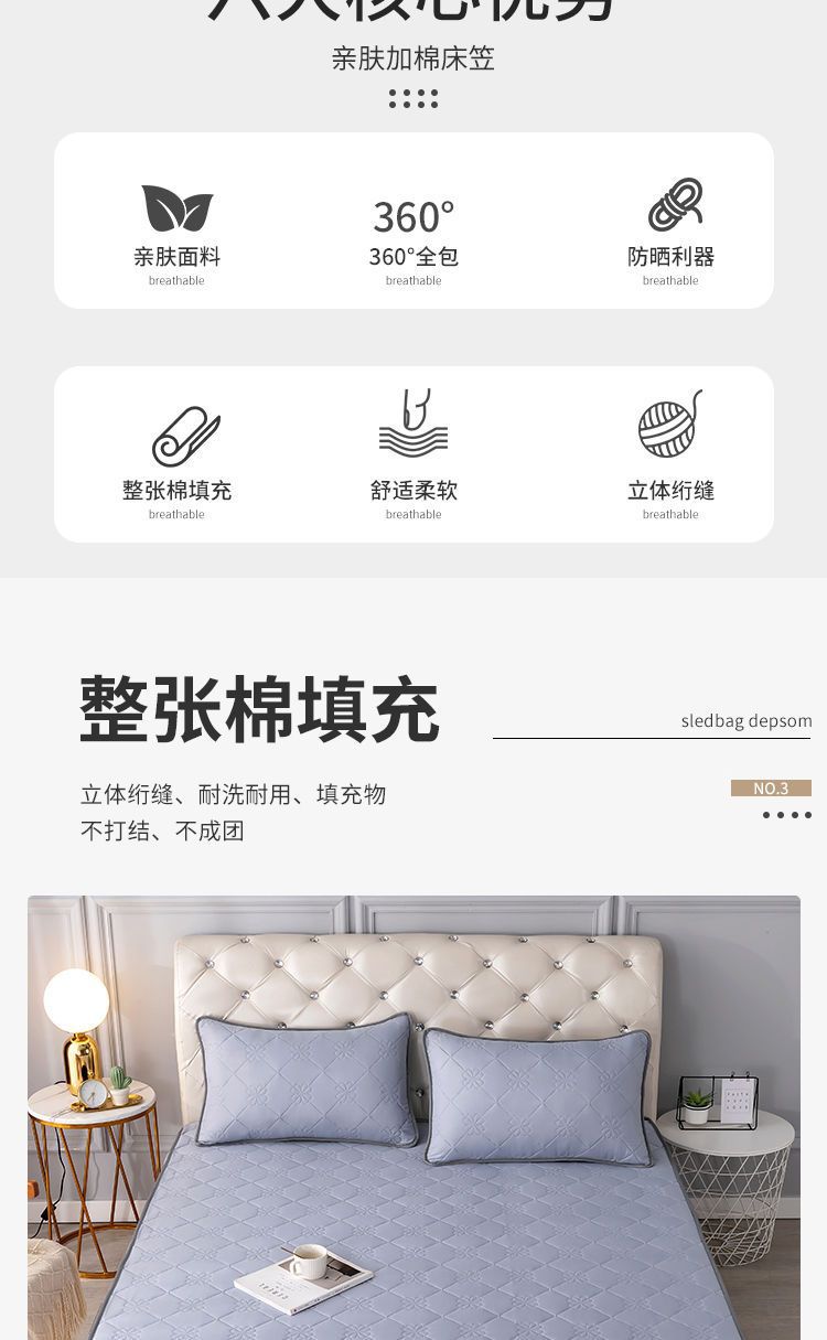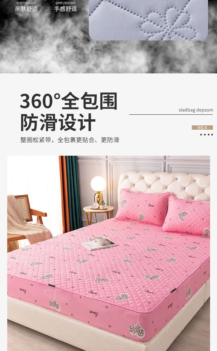 전체 인클로저 클래스 침대 커버 면화 패딩 매트리스 보호 커버 침대 시트 미끄럼 고정 침대 커버 이동식 및 세척 가능한 Zhao Zhizhou