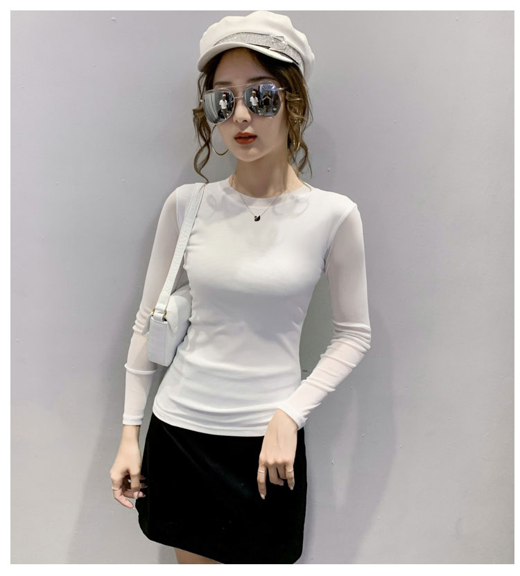봄과 가을 새로운 슬림 핏 미드 슬리브 메쉬베이스 셔츠 내부 탑 간단한 올매치 7 포인트 슬리브 아우터 웨어 여성용 탑