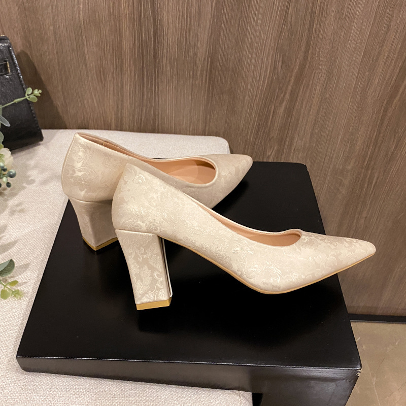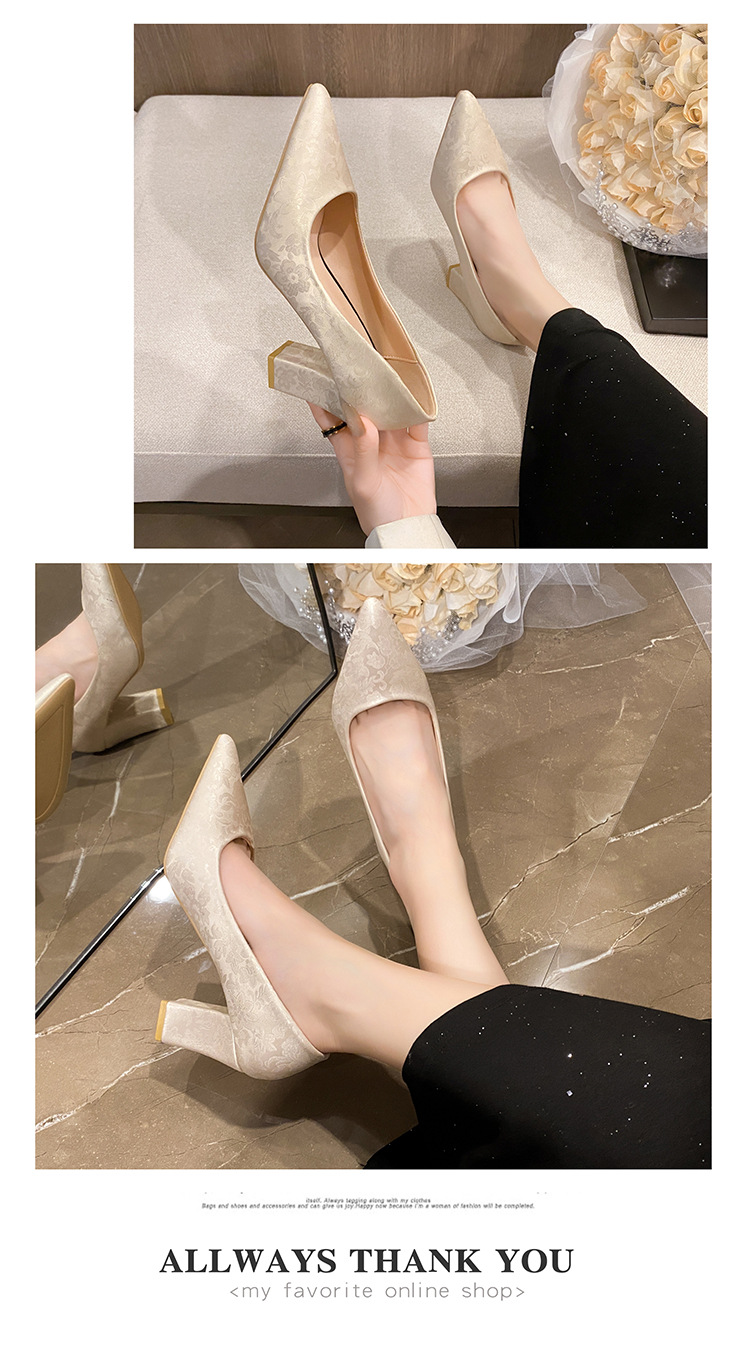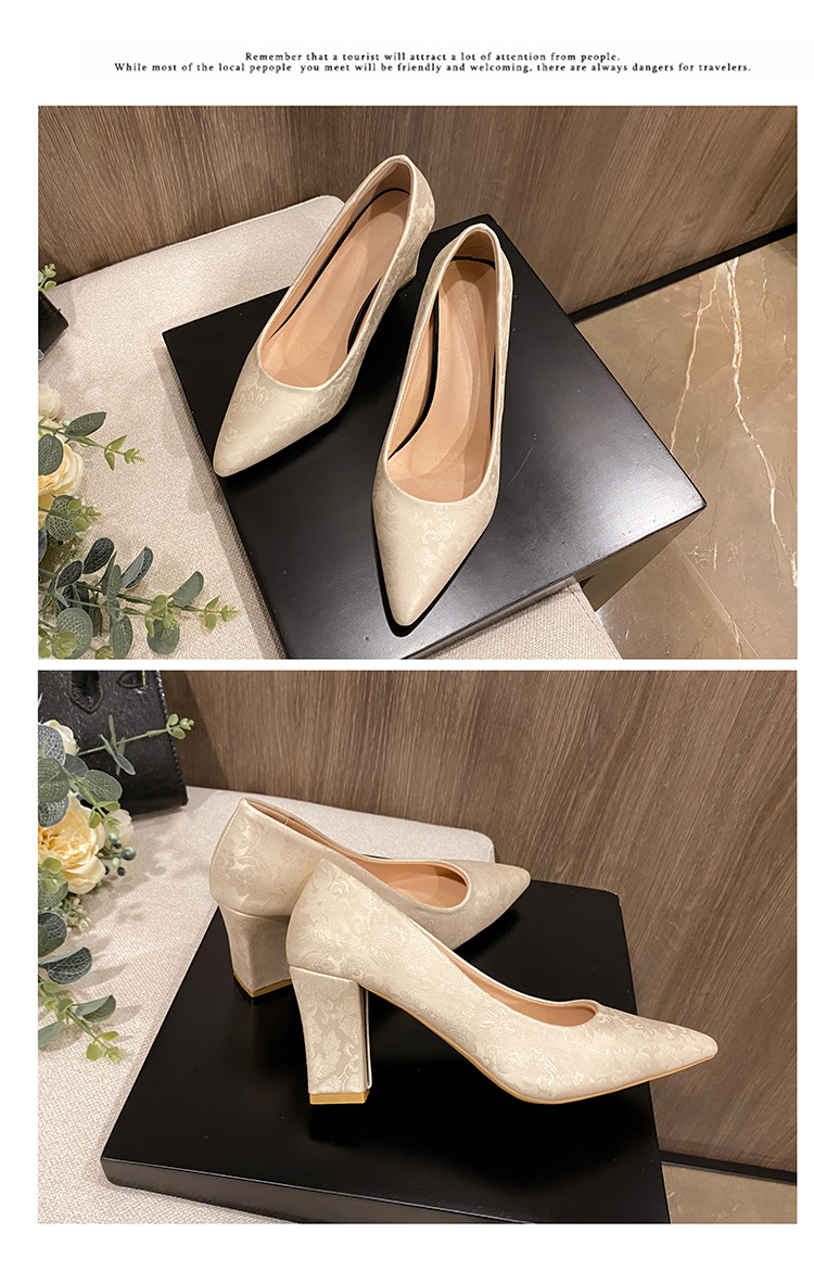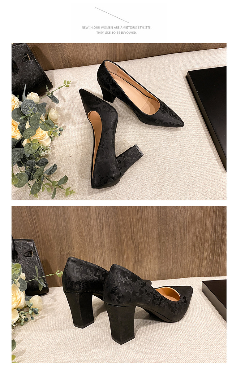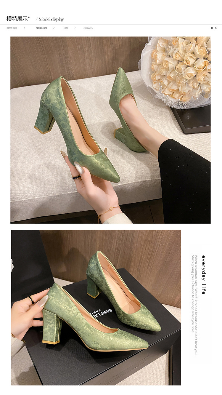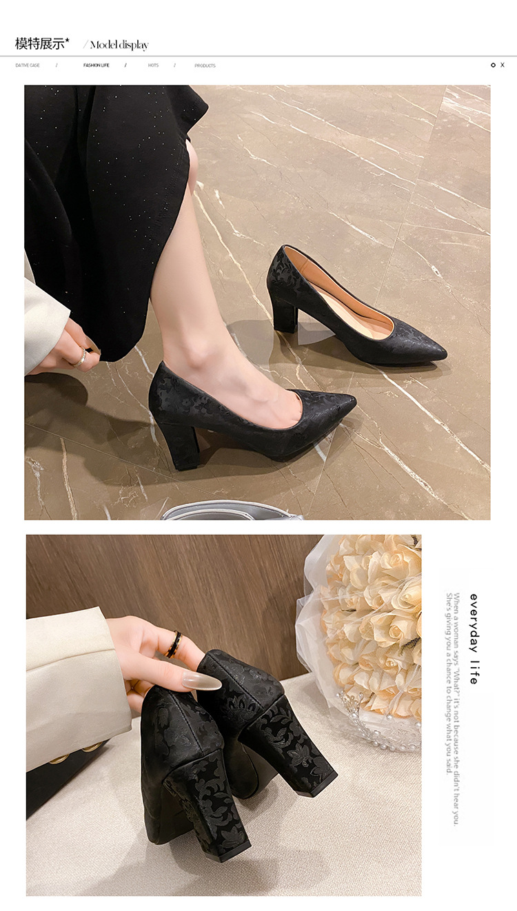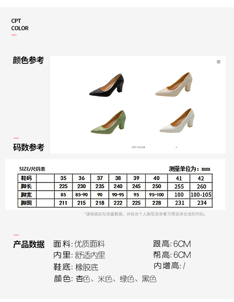 유럽과 미국의 플러스 사이즈 하이힐 2024 새로운 패션 뾰족한 두꺼운 힐 편안한 얕은 입 하이힐 신발 여성 재고 도매스토어 가기