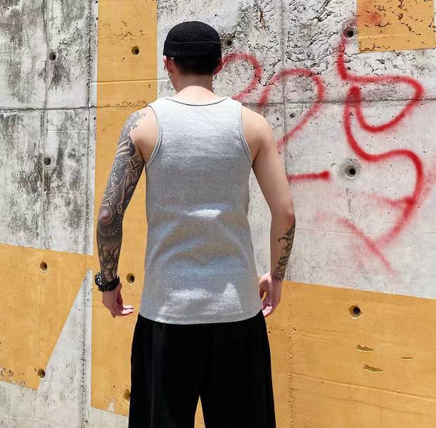 여름 스포츠 조끼 힙합 코튼 두꺼운 골지 타이트핏 머슬 피트니스 이너웨어 남성용 티셔츠 트렌디 민소매 브랜드스토어 가기