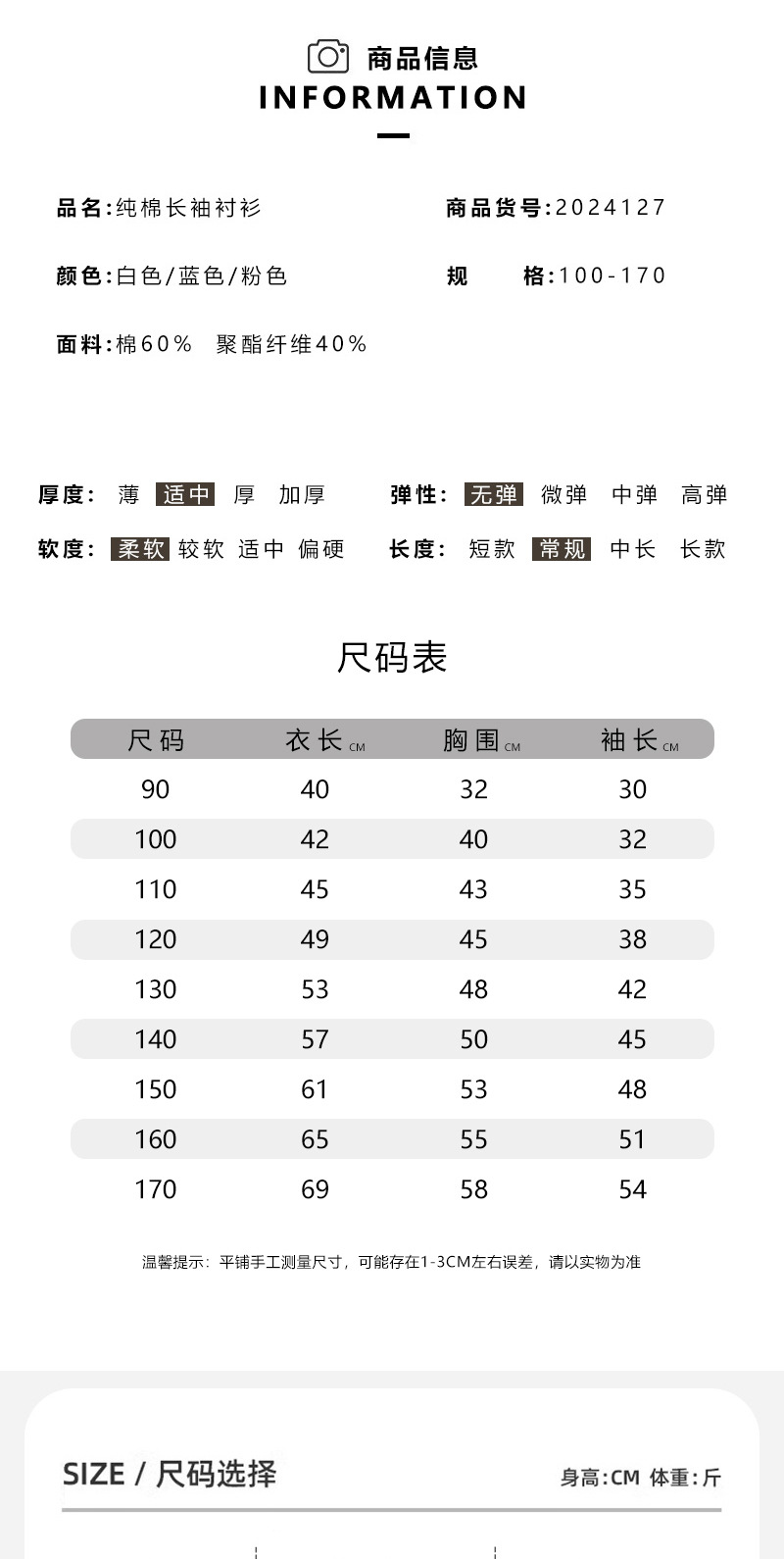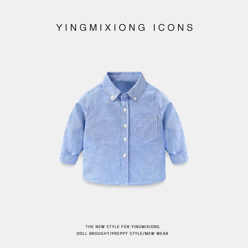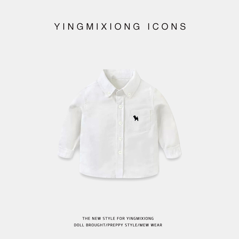 소년의 단색 긴 소매 셔츠 가을 봄과 가을 흰 소녀 어린이 의류 어린이 중 큰 어린이 셔츠 탑스토어 가기