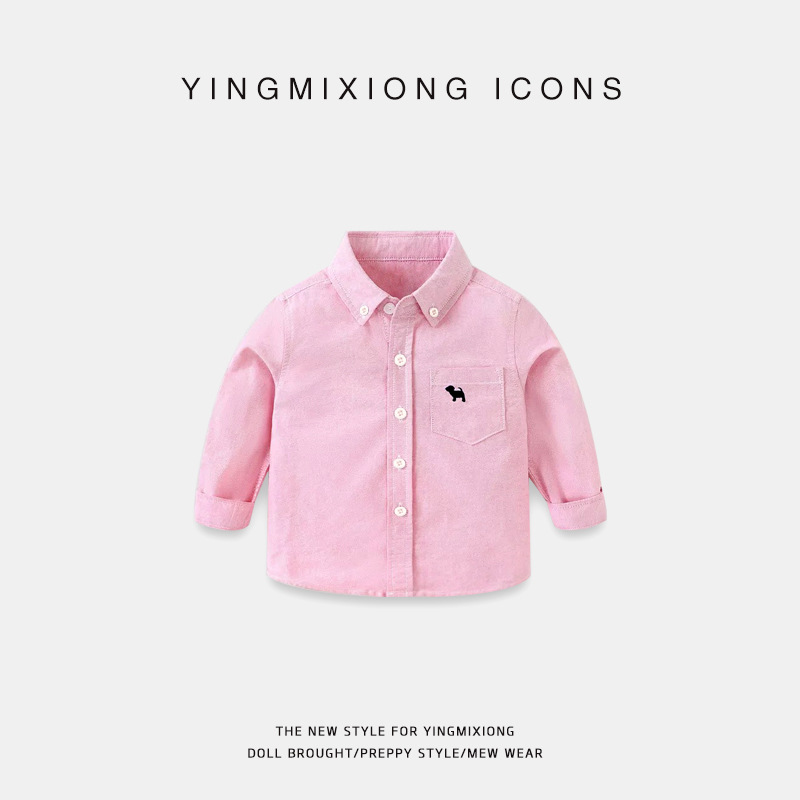 소년의 단색 긴 소매 셔츠 가을 봄과 가을 흰 소녀 어린이 의류 어린이 중 큰 어린이 셔츠 탑