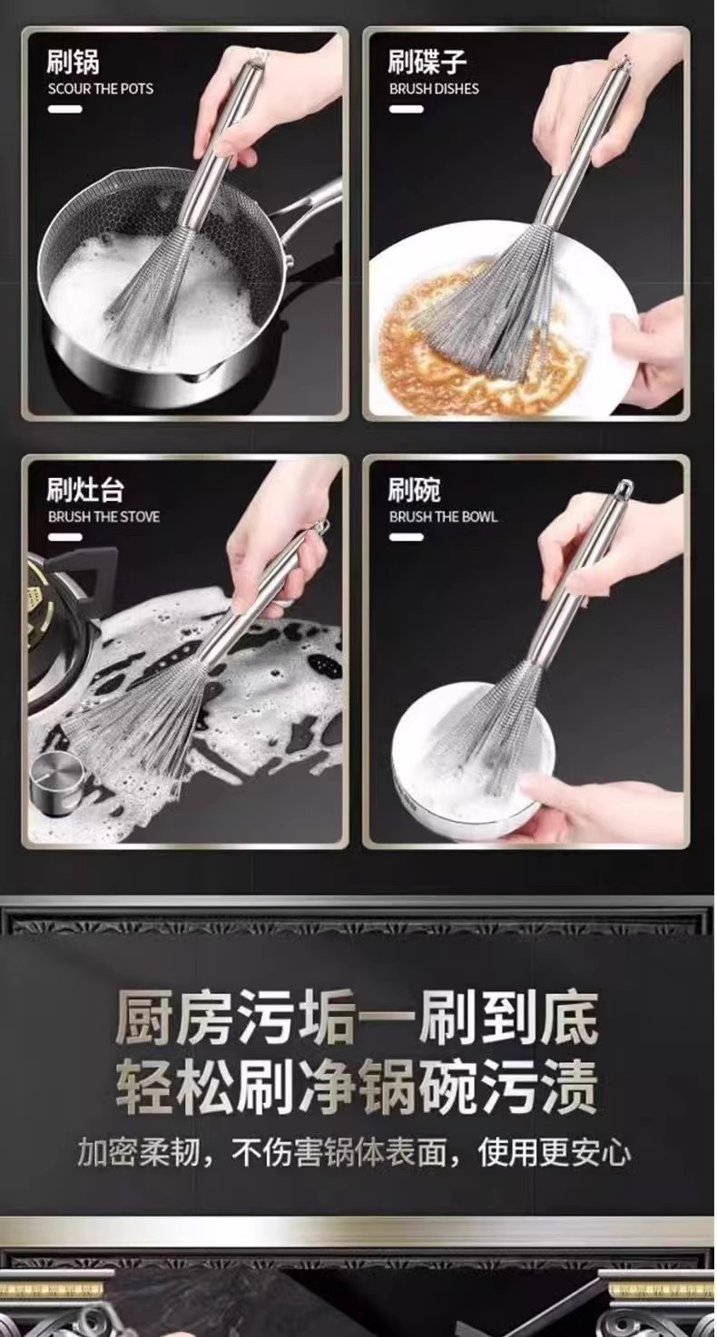 304 스테인레스 스틸 냄비 브러시 주방 긴 핸들 브러시 냄비 스테인레스 스틸 와이어 세척 냄비 브러시 가정용 매우 카이