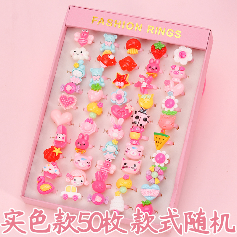 새로운 어린이 반지 만화 소녀 공주 보석 크리스탈 보석 다이아몬드 장난감 소녀의 케이