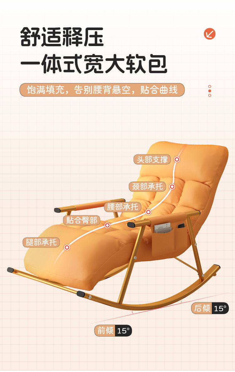 거실 Recliner 성인 발코니 레저 의자 접이식 점심 휴식 게으른 소파 흔들 의자
