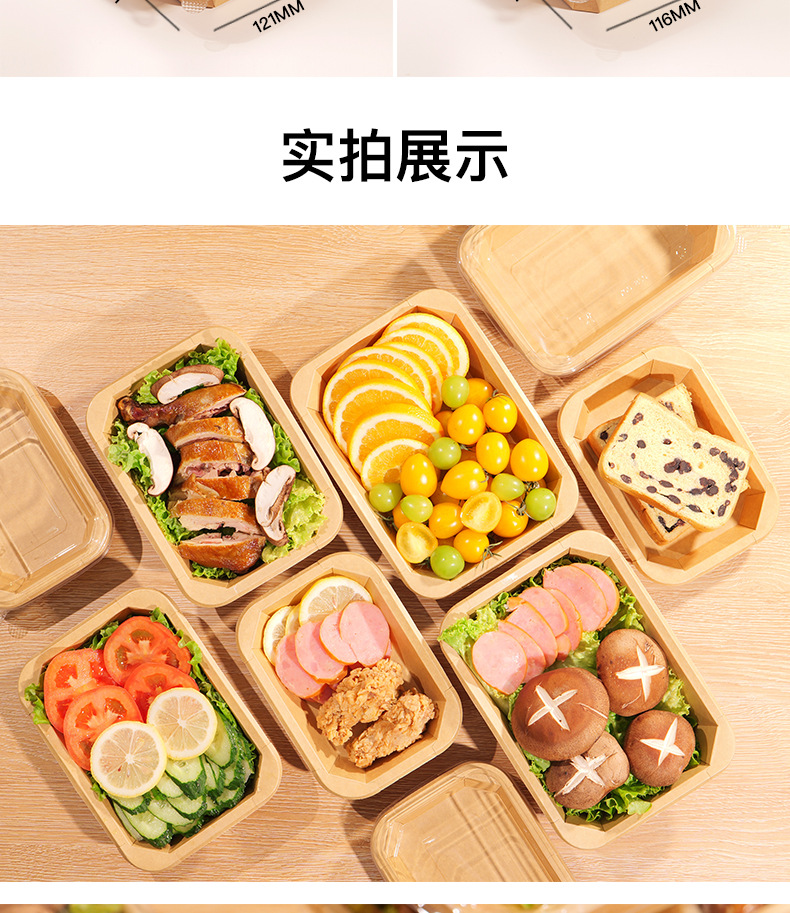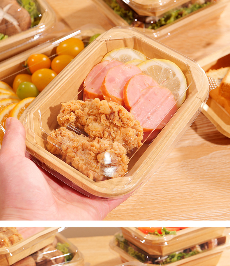 일회용 크래프트 종이 과일 포장 상자 직사각형 팔각형 테이크 아웃 포장 상자 디저트 그릇 볼록 뚜껑 도시락