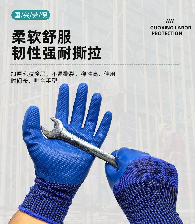 미끄럼 방지 및 절단 방지 물리적 양각 노동 보호 장갑 라텍스 내유성 및 내마모성 절연 건설 현장 작업용 나일론 장갑스토어 가기