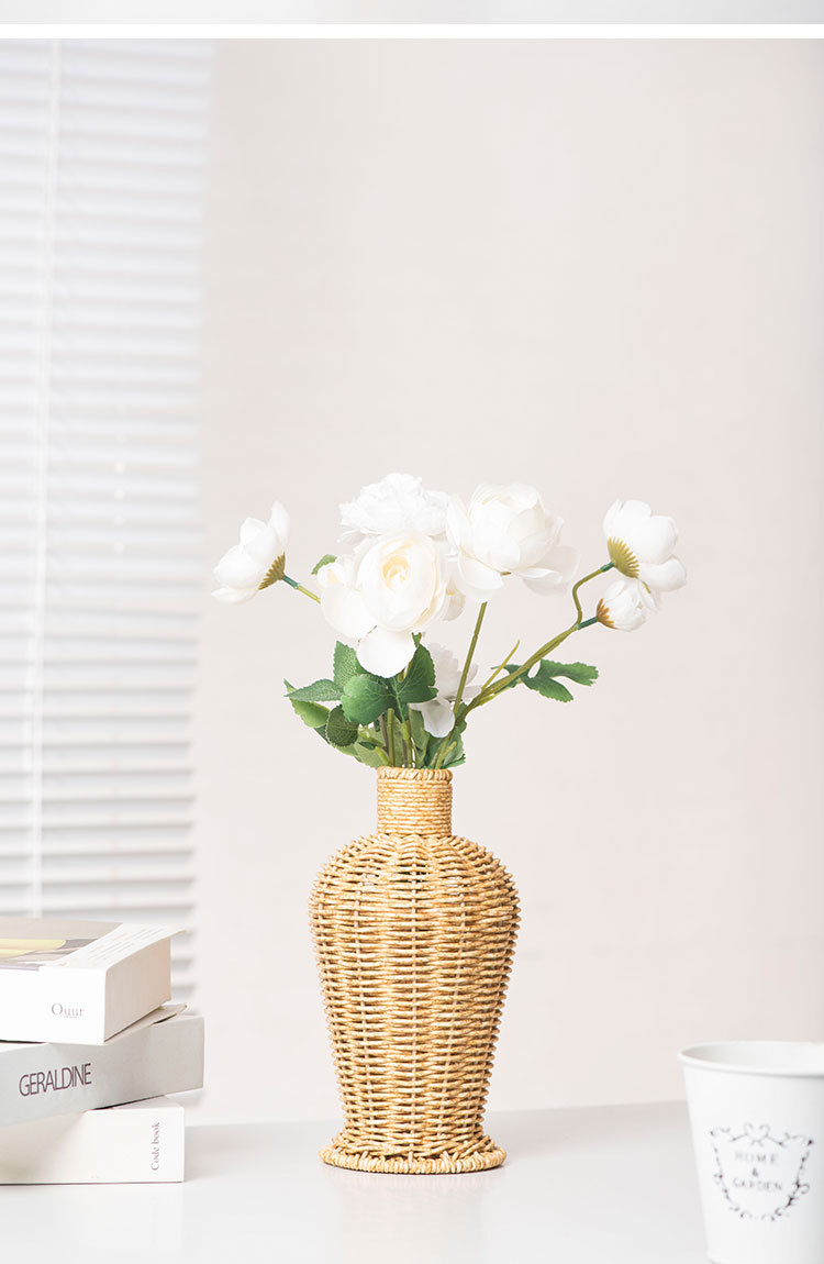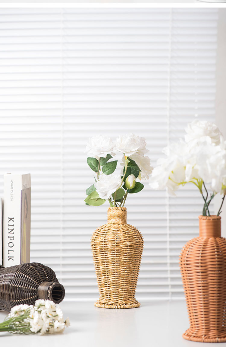 모조 등나무 짠 꽃병 거실 고급 말린 꽃병 장식품 데스크탑 홈 장식 꽃병 시뮬레이션 꽃 장식