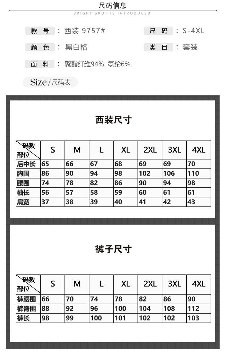• 흑백 체크무늬 슈트 +8128 블랙 팬츠