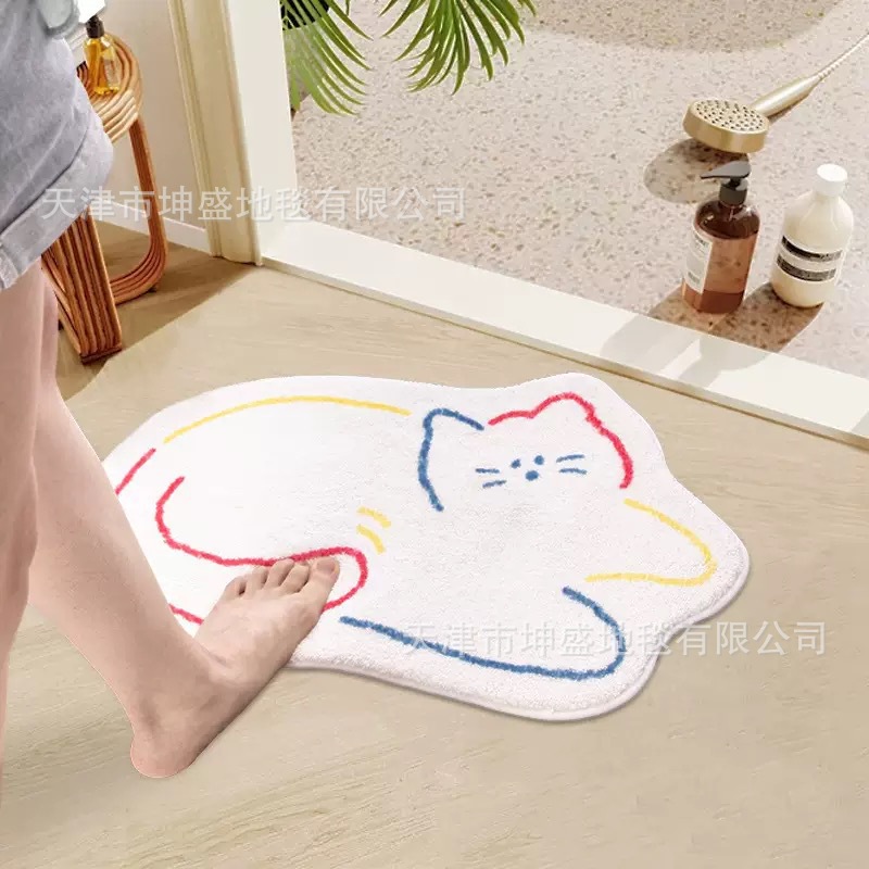 귀여운 만화 모양의 고양이 강아지 모방 캐시미어 바닥 매트 부드러운 반원 욕실 흡수성 미끄럼 방지 매트 도어 매트 카펫