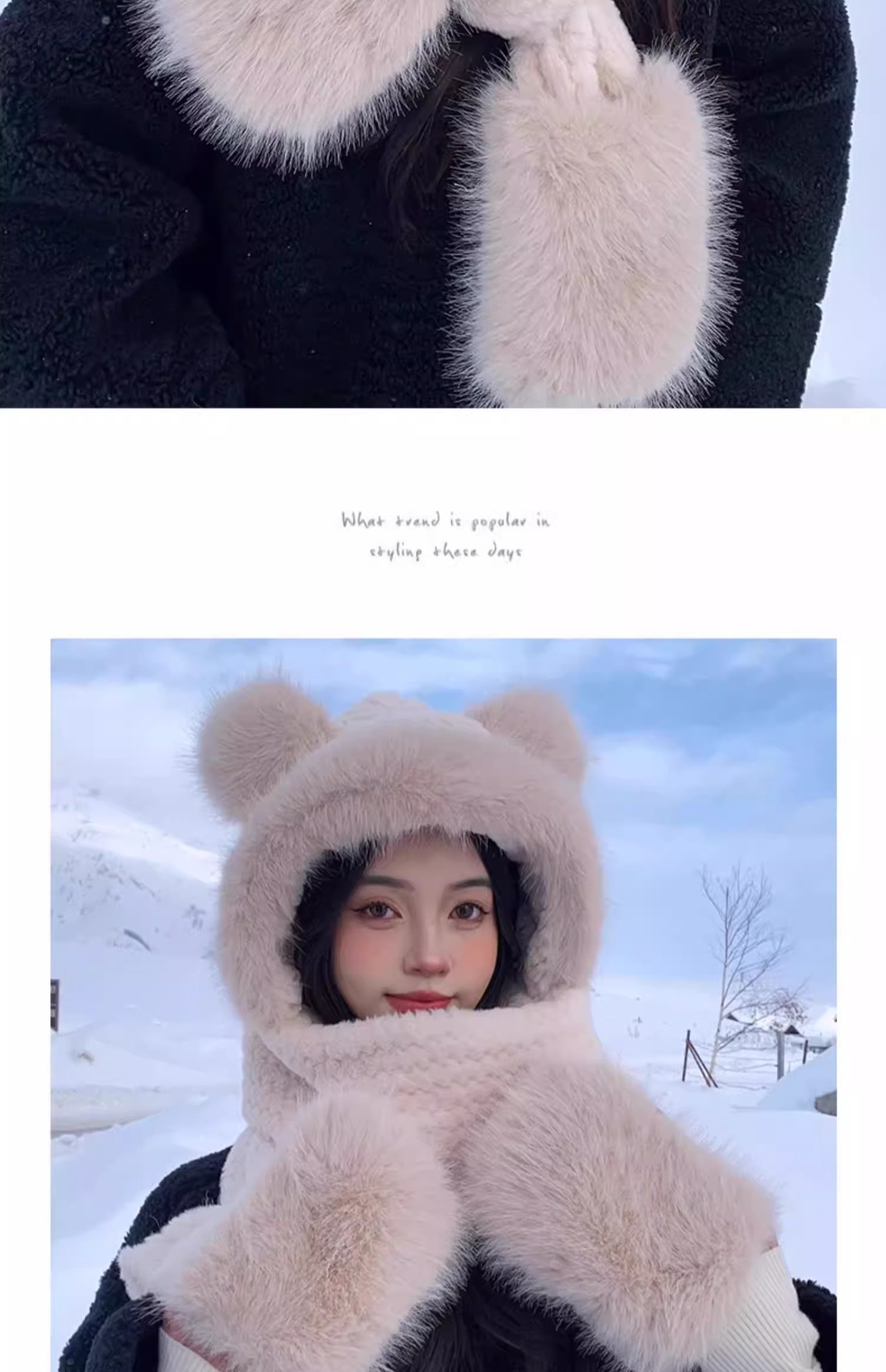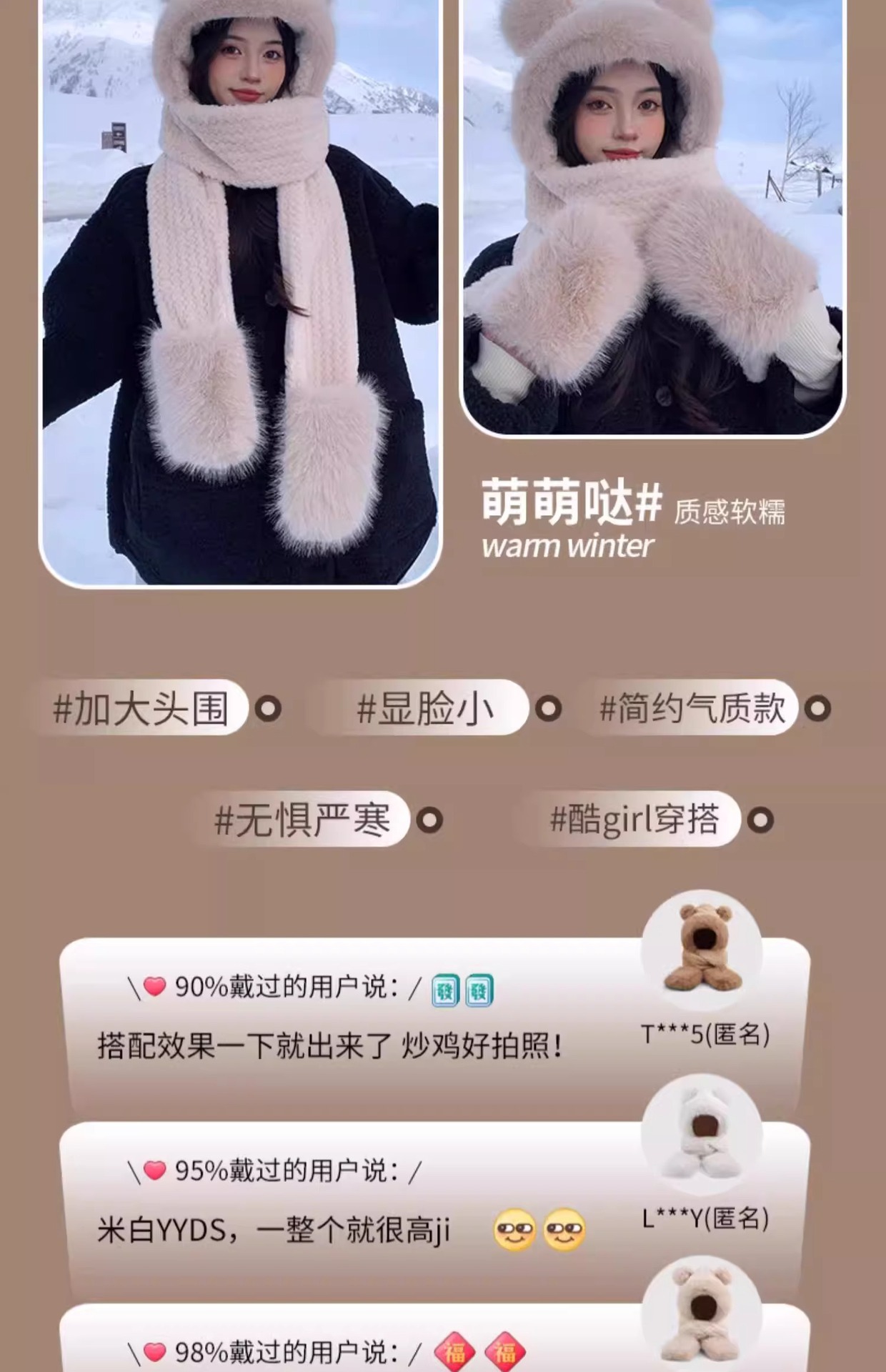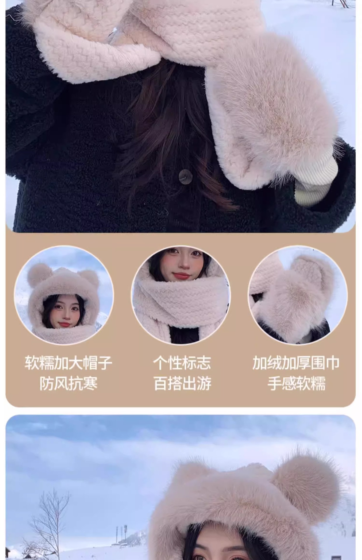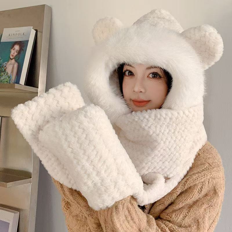 곰 모자 장갑 스카프 3 피스 세트 두꺼운 봉제 따뜻한 올 매치 스카프 야외 승마 냉난방 통합 모자