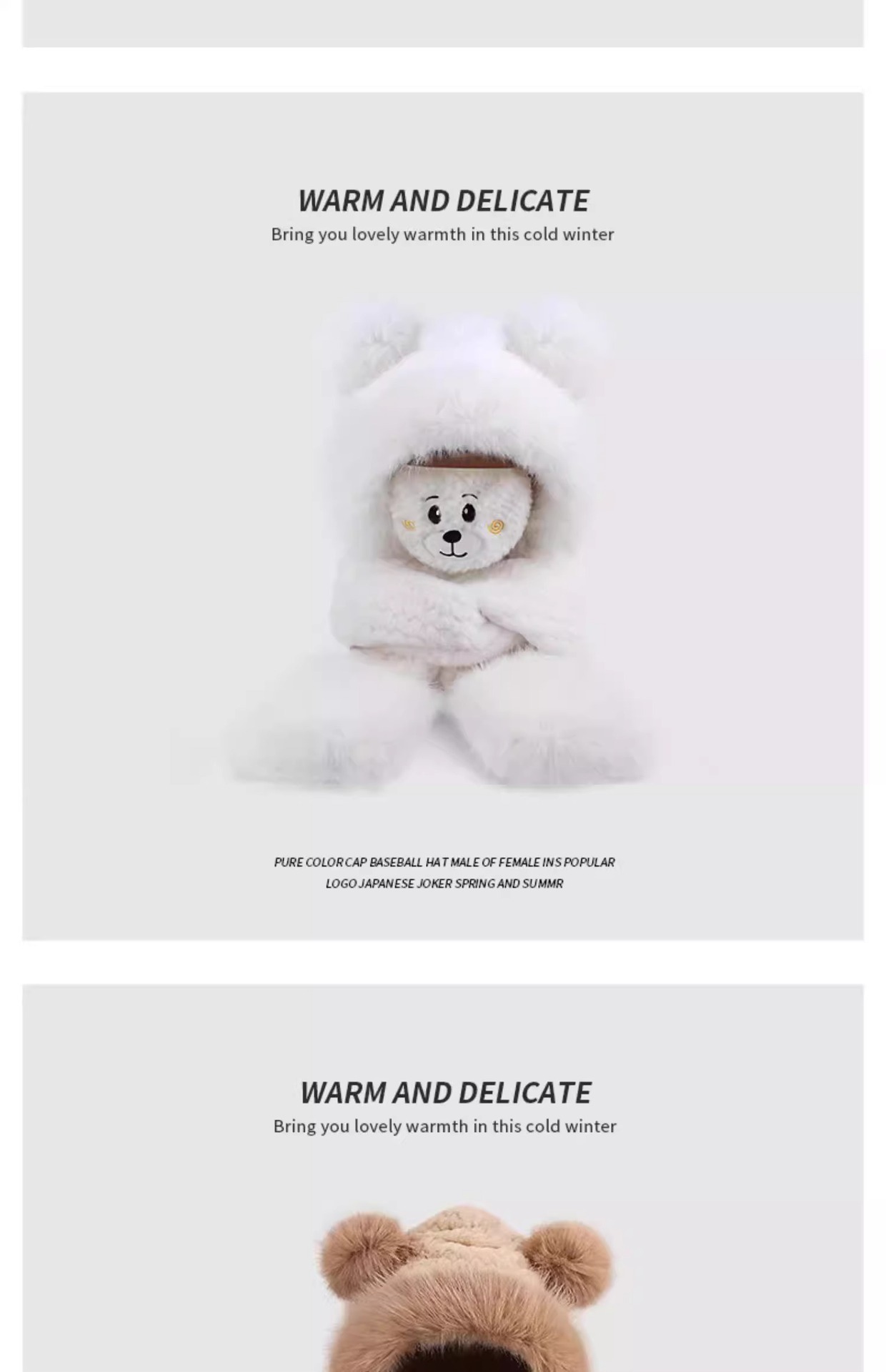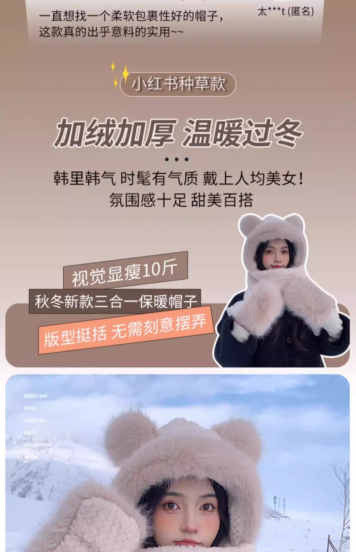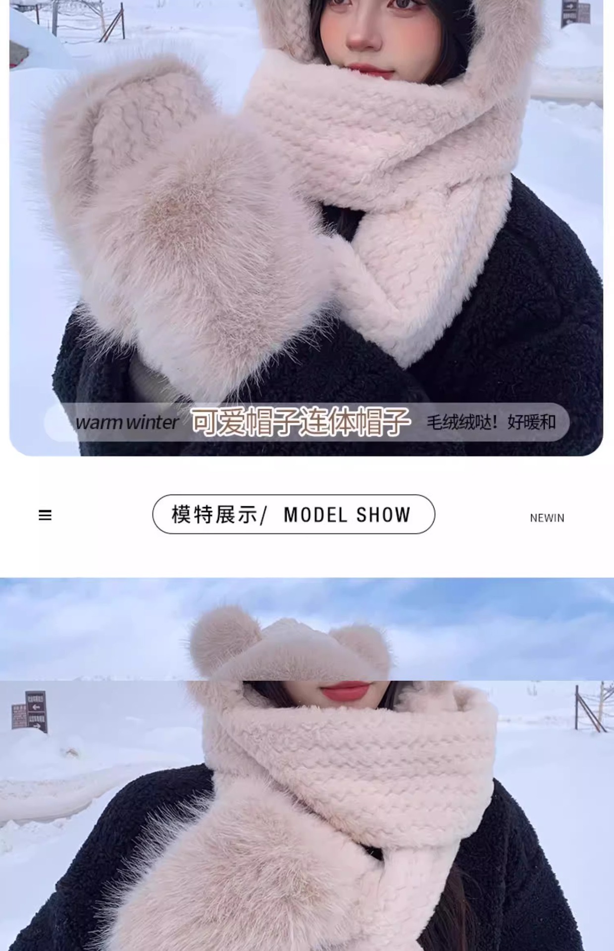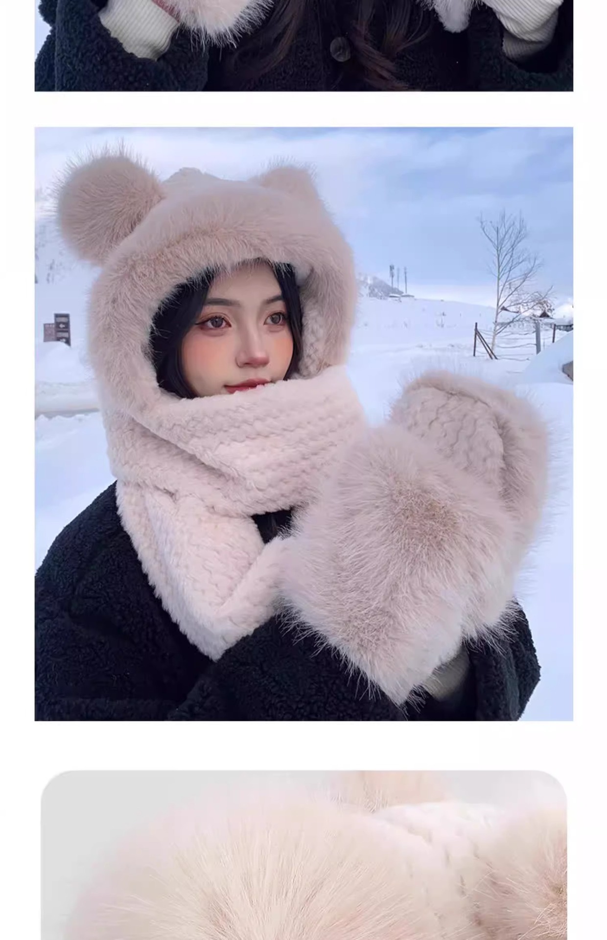 곰 모자 장갑 스카프 3 피스 세트 두꺼운 봉제 따뜻한 올 매치 스카프 야외 승마 냉난방 통합 모자