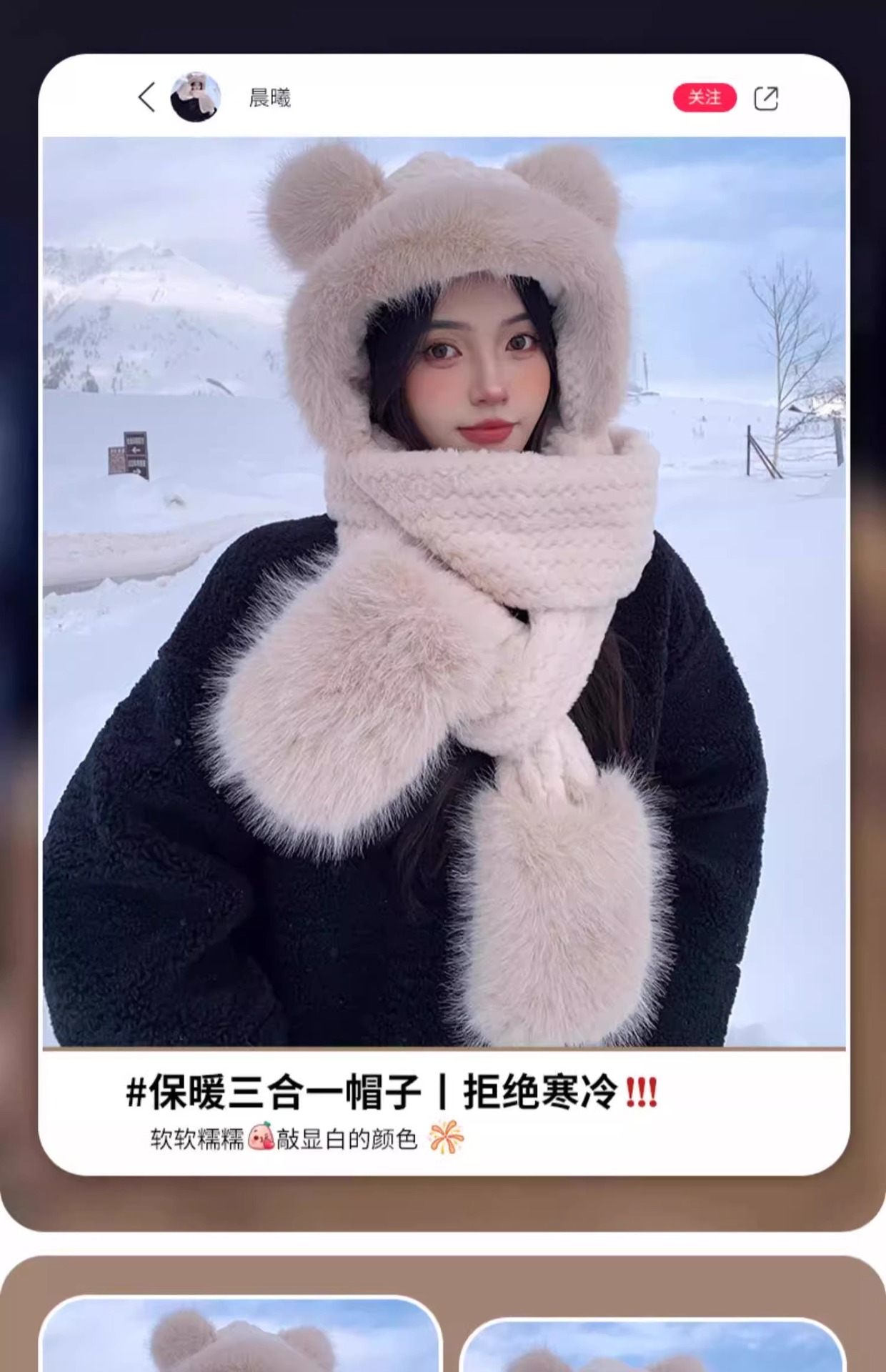 곰 모자 장갑 스카프 3 피스 세트 두꺼운 봉제 따뜻한 올 매치 스카프 야외 승마 냉난방 통합 모자스토어 가기