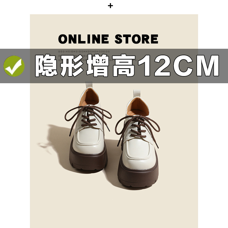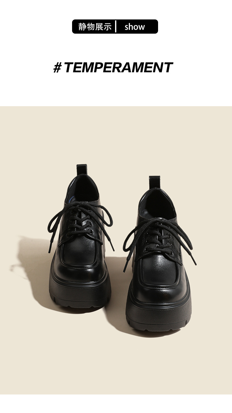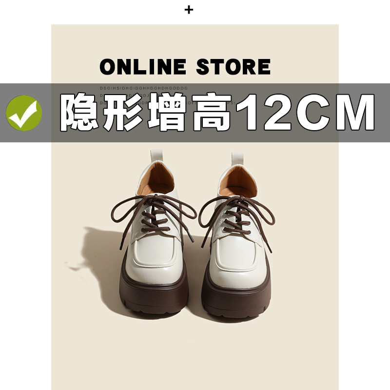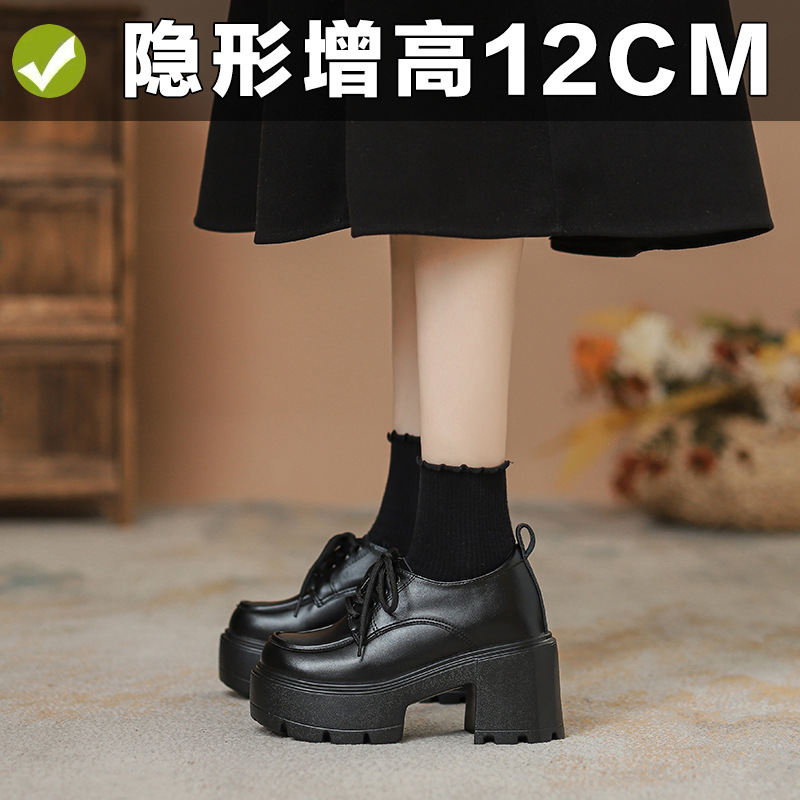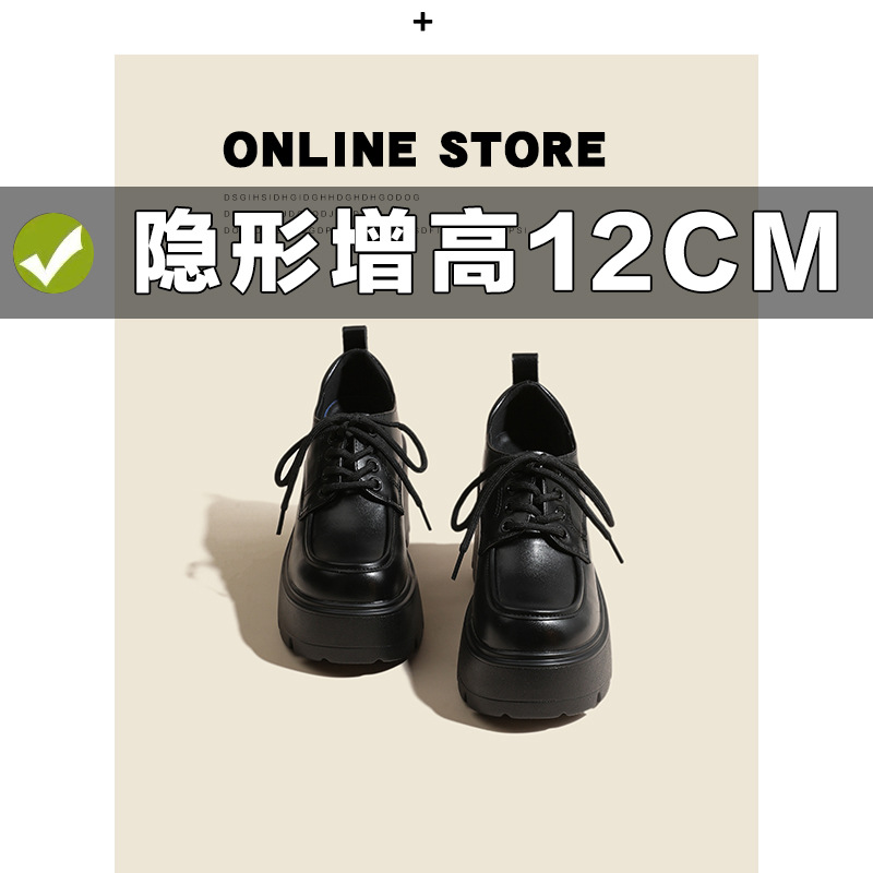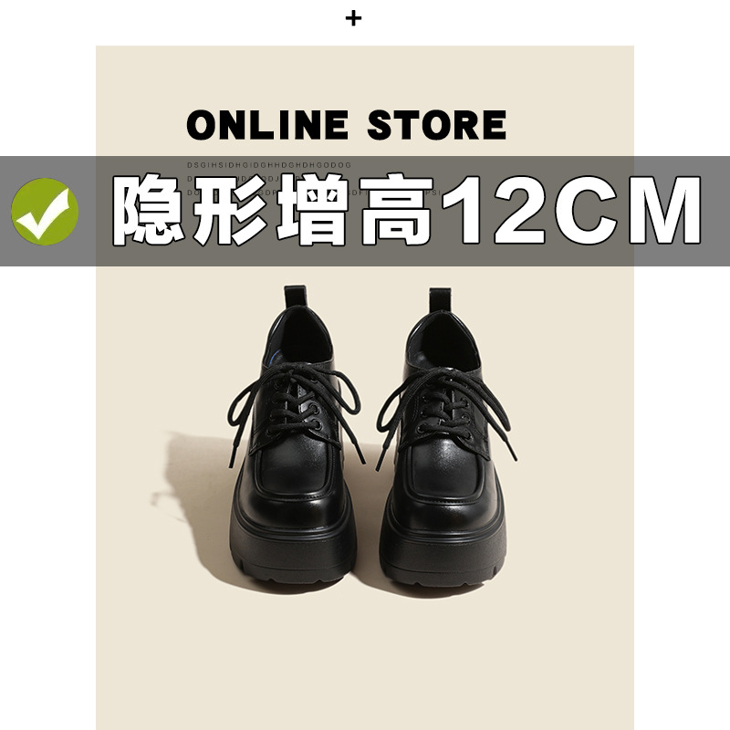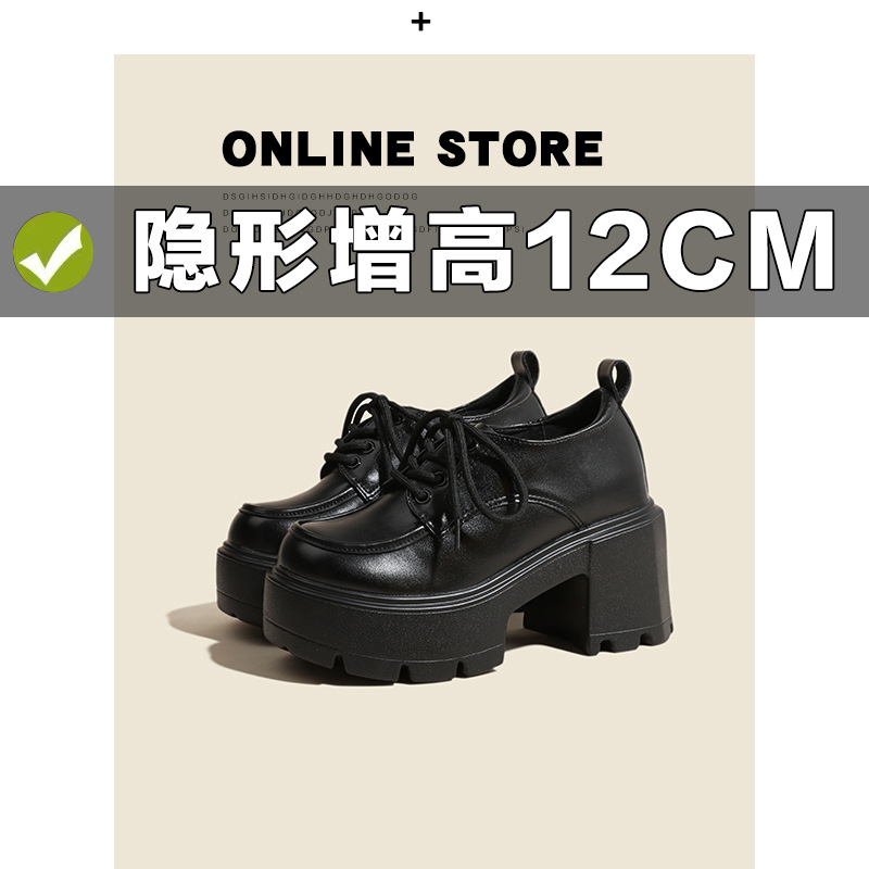 두꺼운 밑창 레이스 업 로퍼 두꺼운 힐 작은 가죽 신발 2024 봄과 가을 새로운 라운드 헤드 블랙 다용도 12cm 증가스토어 가기