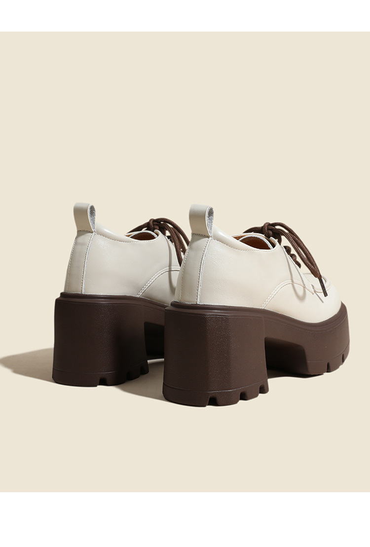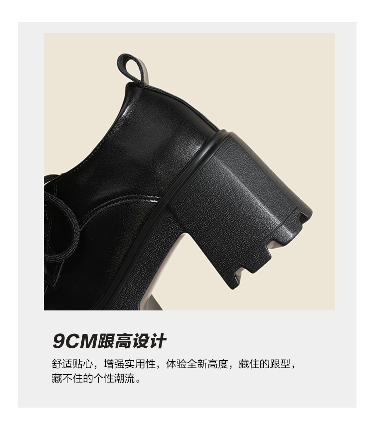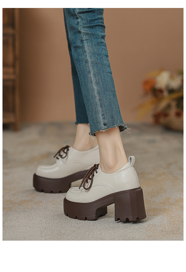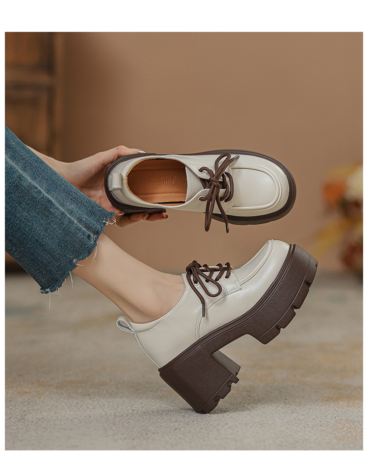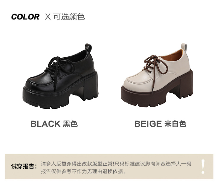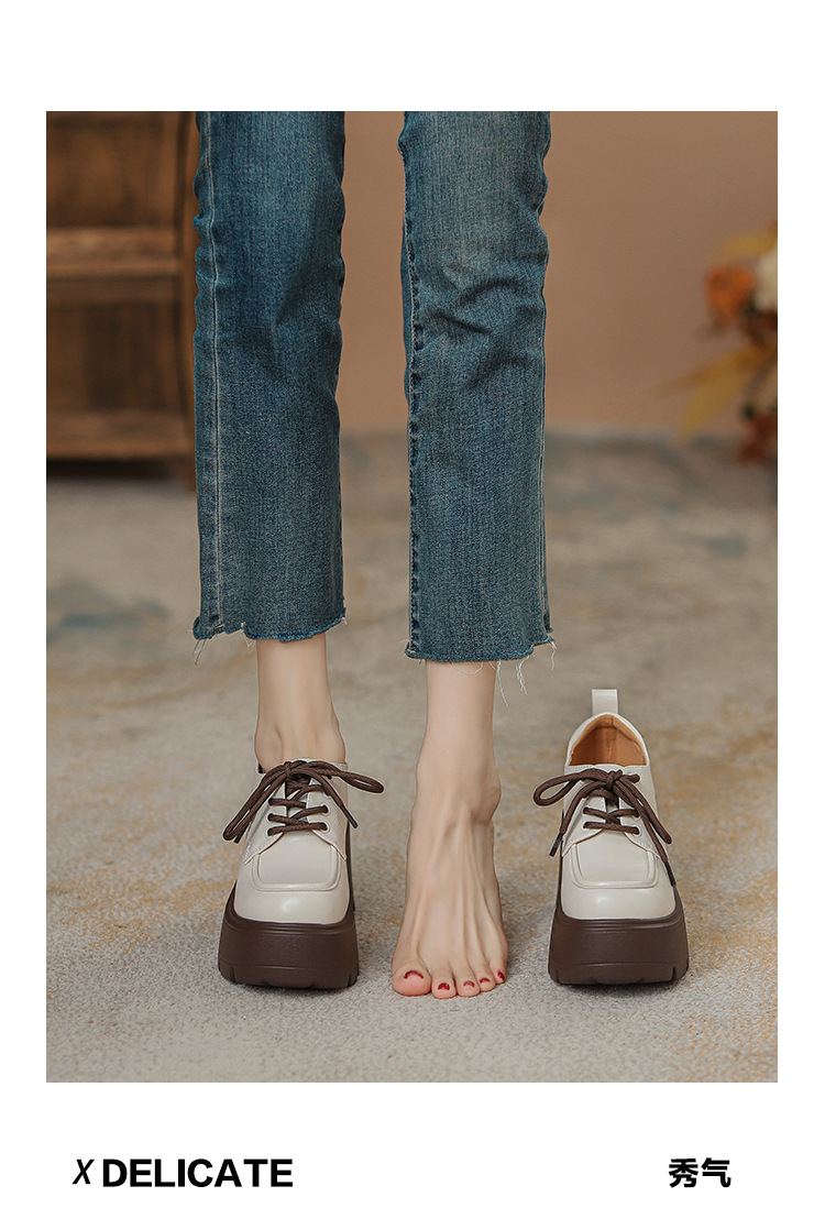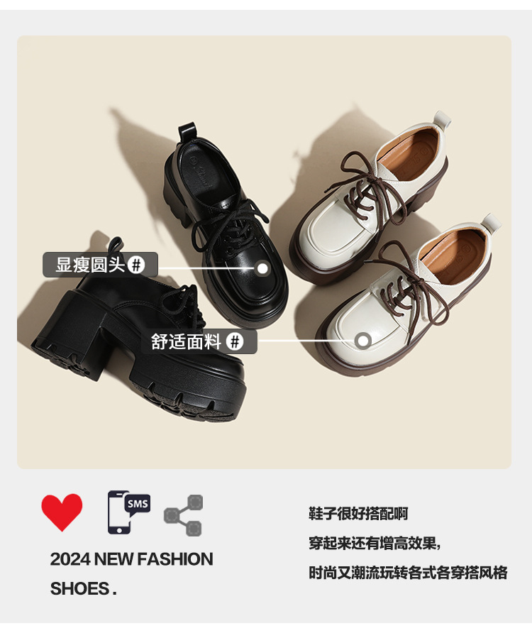 두꺼운 밑창 레이스 업 로퍼 두꺼운 힐 작은 가죽 신발 2024 봄과 가을 새로운 라운드 헤드 블랙 다용도 12cm 증가스토어 가기