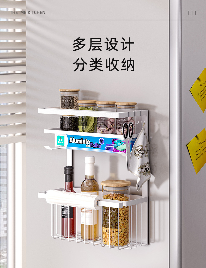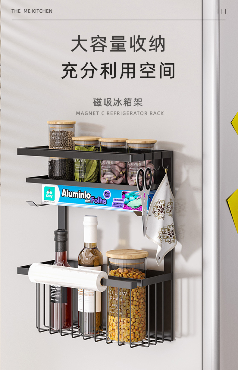 마그네틱 흡입 냉장고 사이드 랙 천공되지 않은 스토리지 랙 위생 도어 스토리지 랙 벽 걸이 바구니 조미료 랙 집착 필름스토어 가기