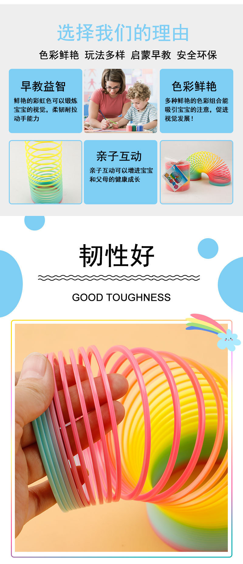 향수 어린이를 판매하는 대형 레인보우 서클 안정형 플라스틱 스프링 링 스프링 링 성인 성능 스톨스토어 가기