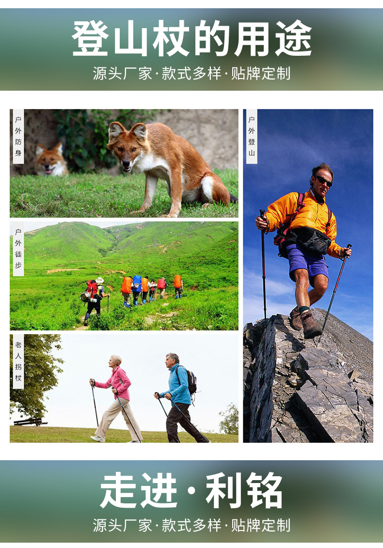 2.登山杖腕带采用高密度专业排汗织带,更结实耐用