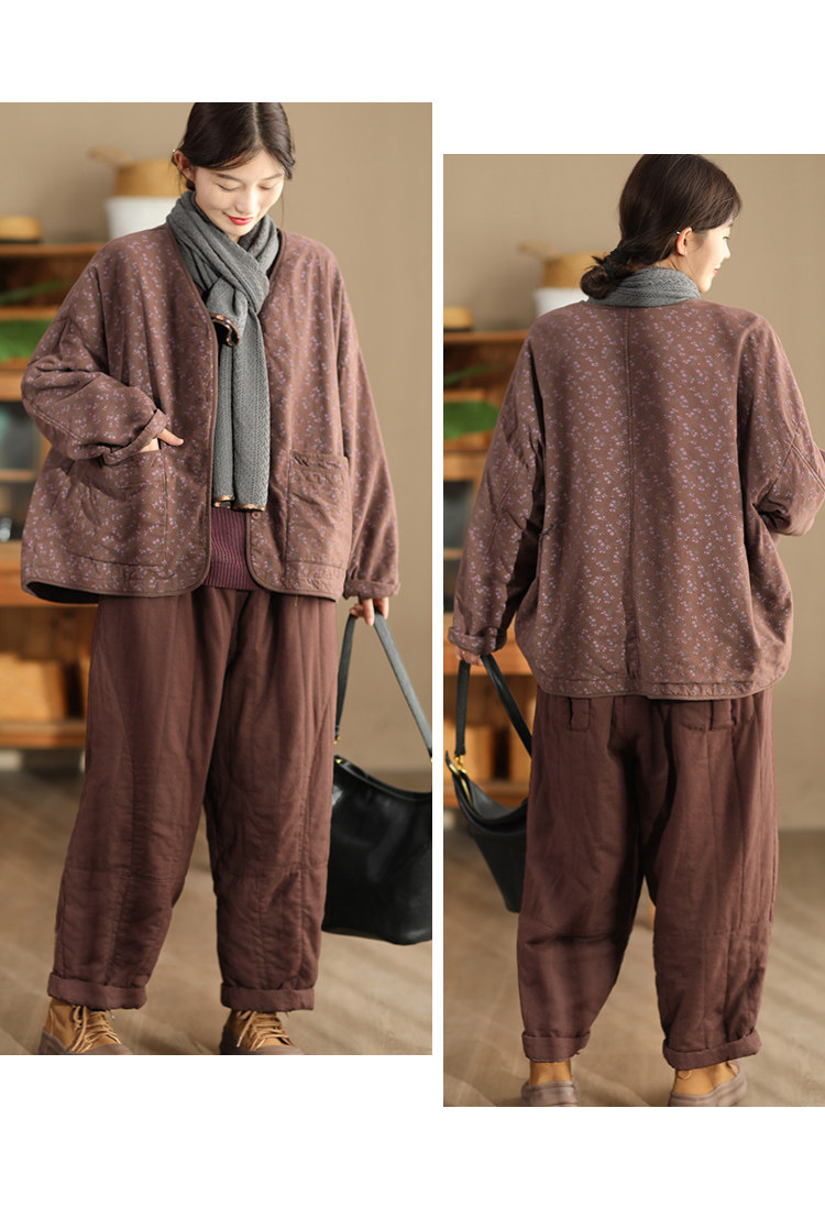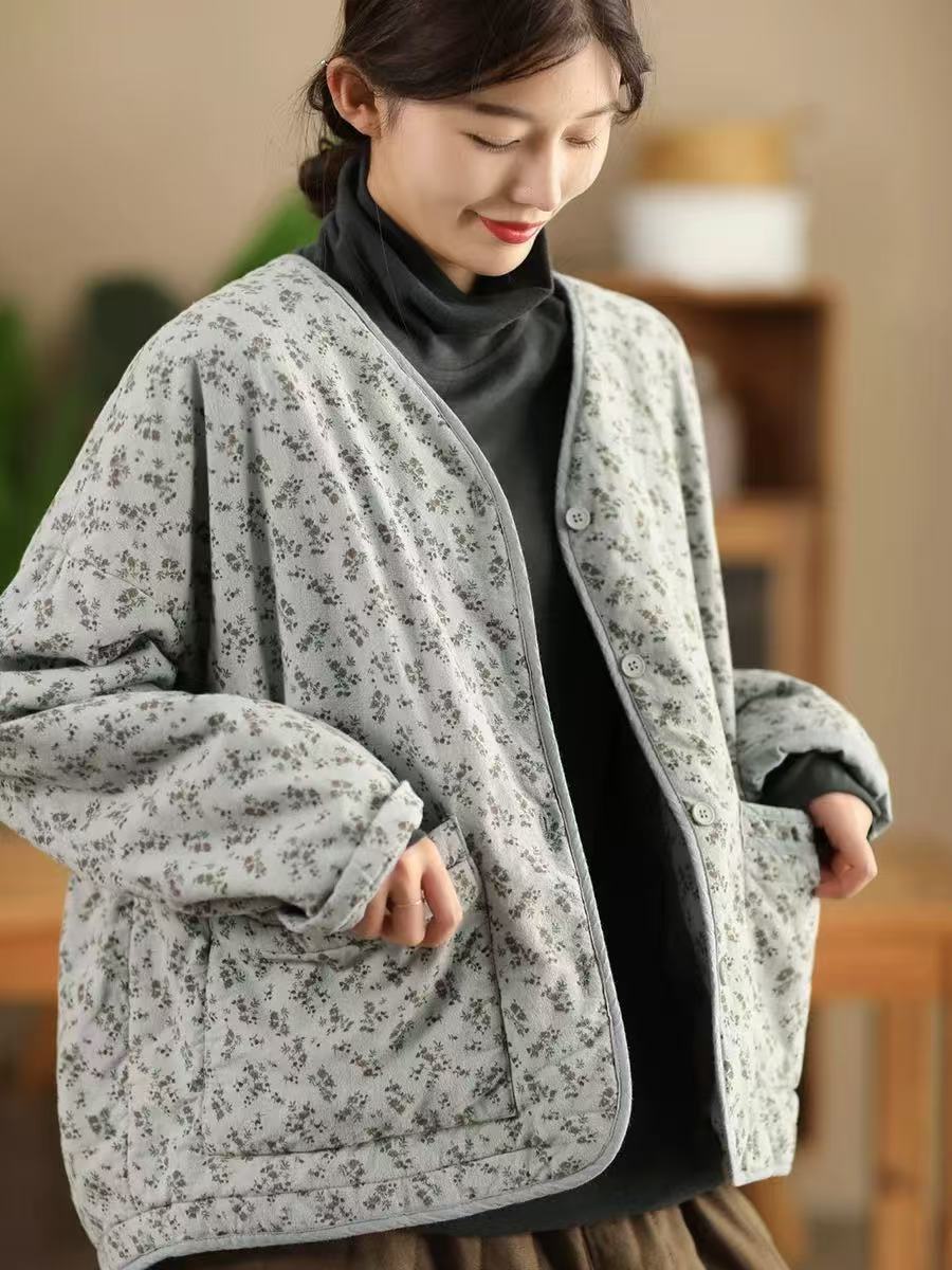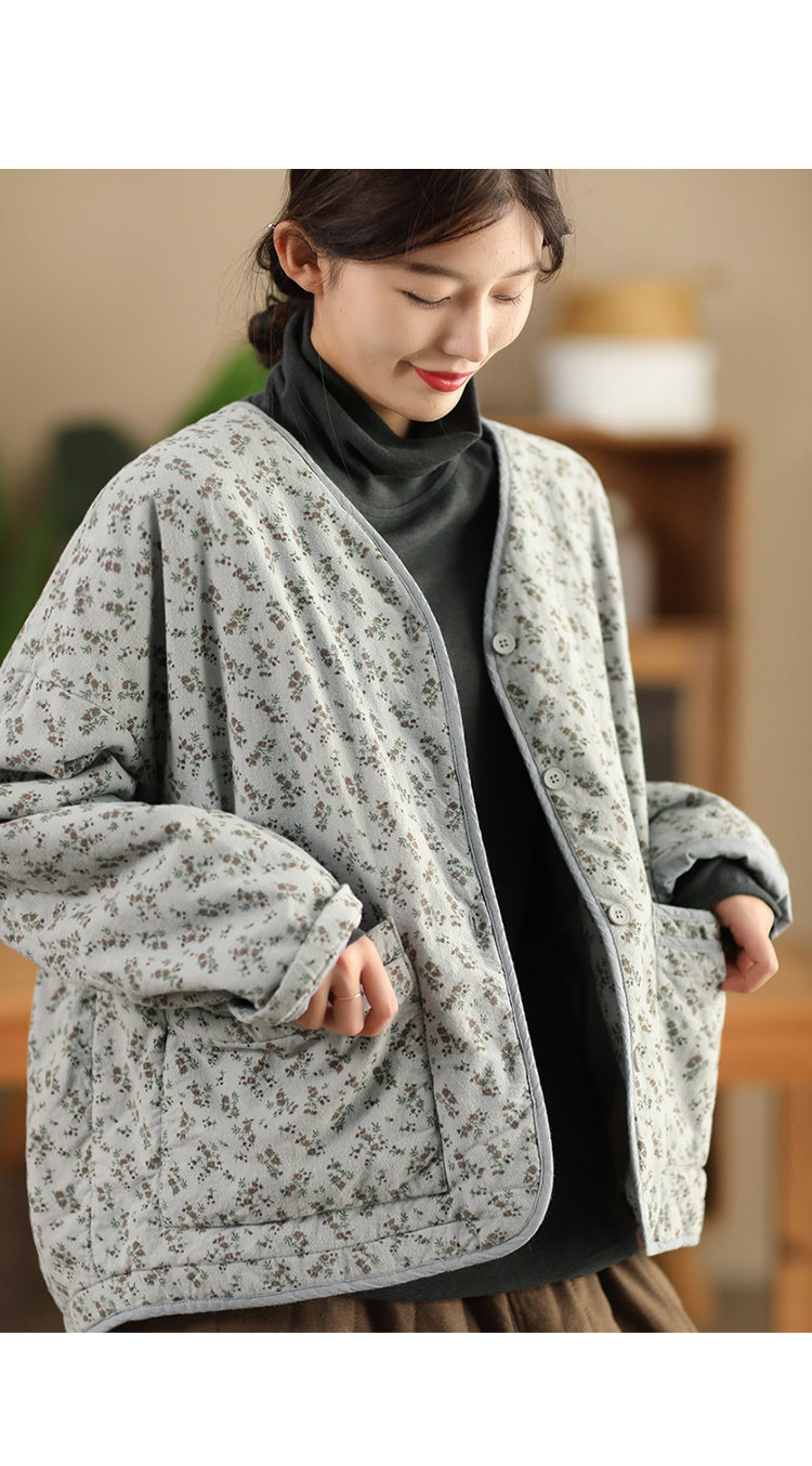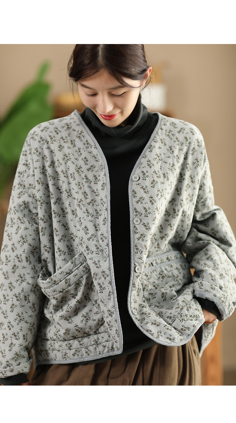 겨울 새로운 볶음 컬러 인쇄면 퀼트 재킷 대형 포켓 여성용 두꺼운 따뜻한 자켓 코튼 패딩 재킷 161스토어 가기