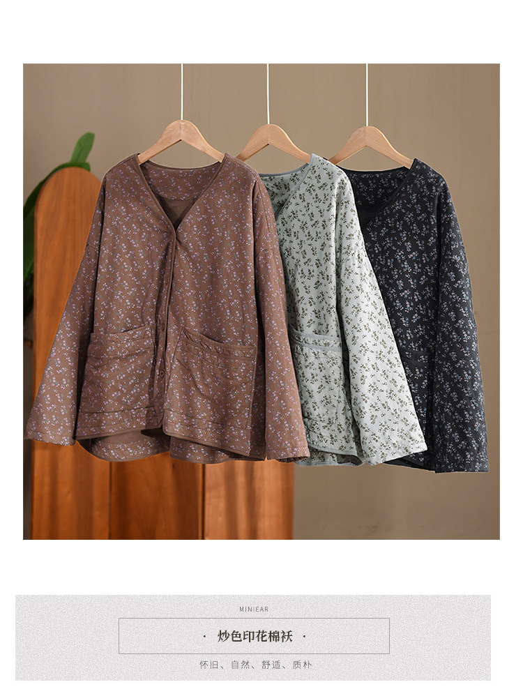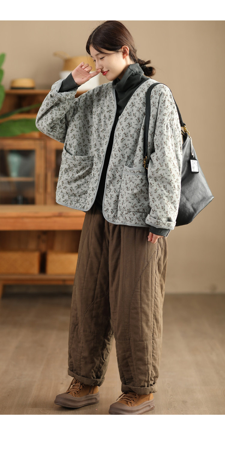 겨울 새로운 볶음 컬러 인쇄면 퀼트 재킷 대형 포켓 여성용 두꺼운 따뜻한 자켓 코튼 패딩 재킷 161
