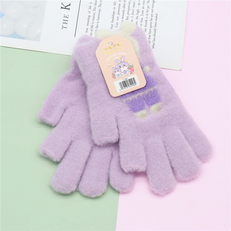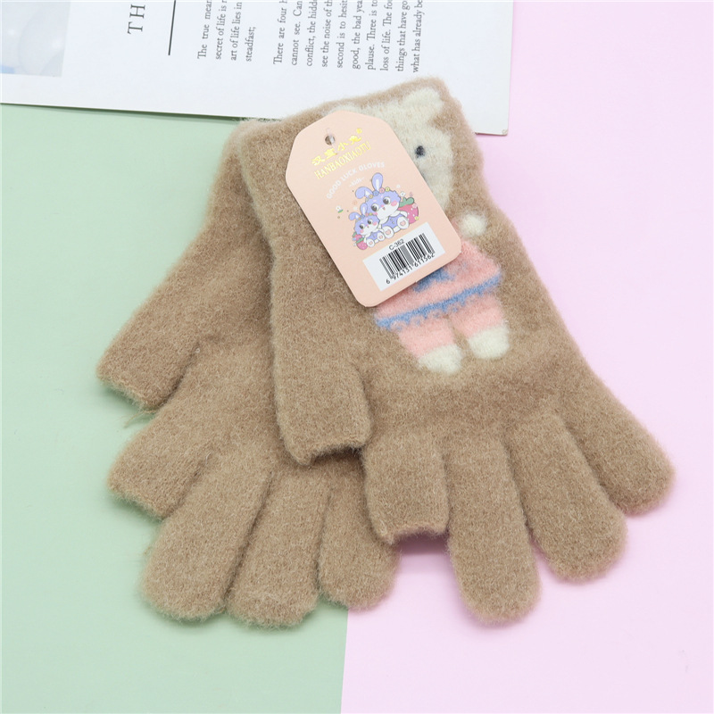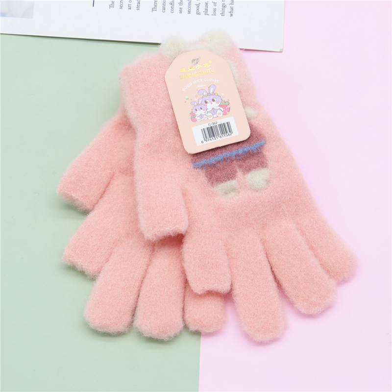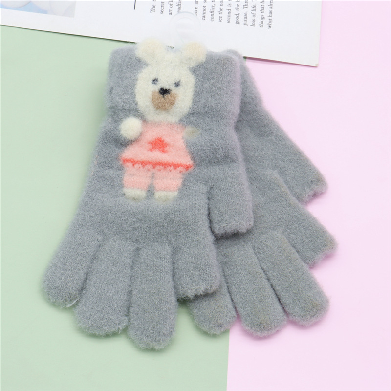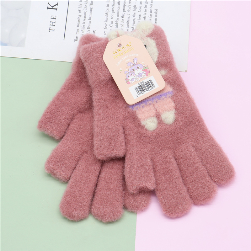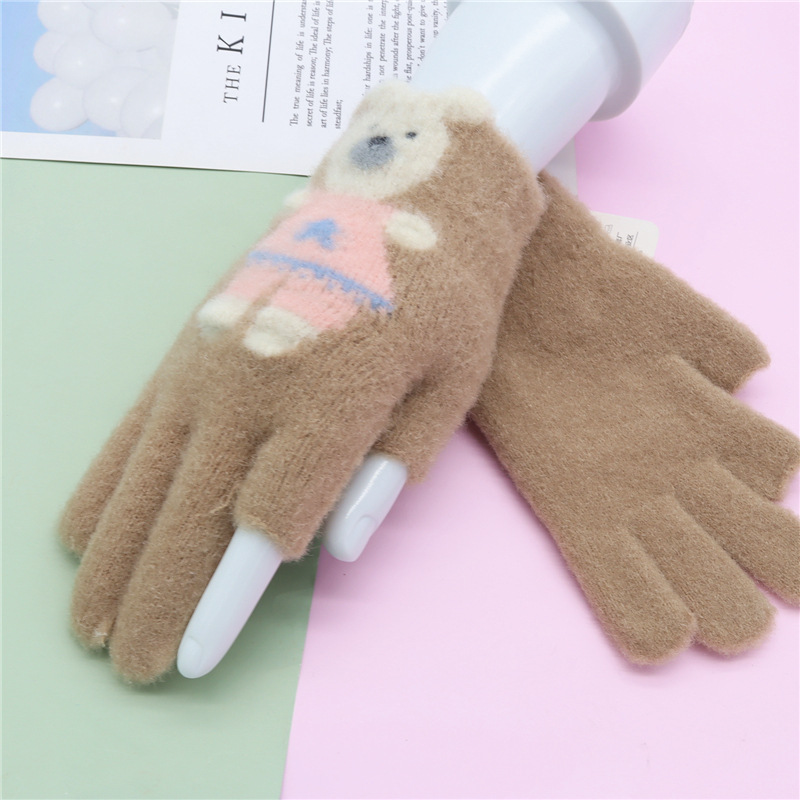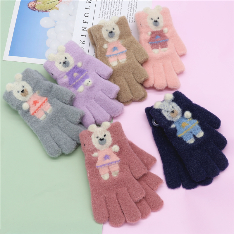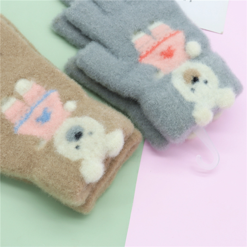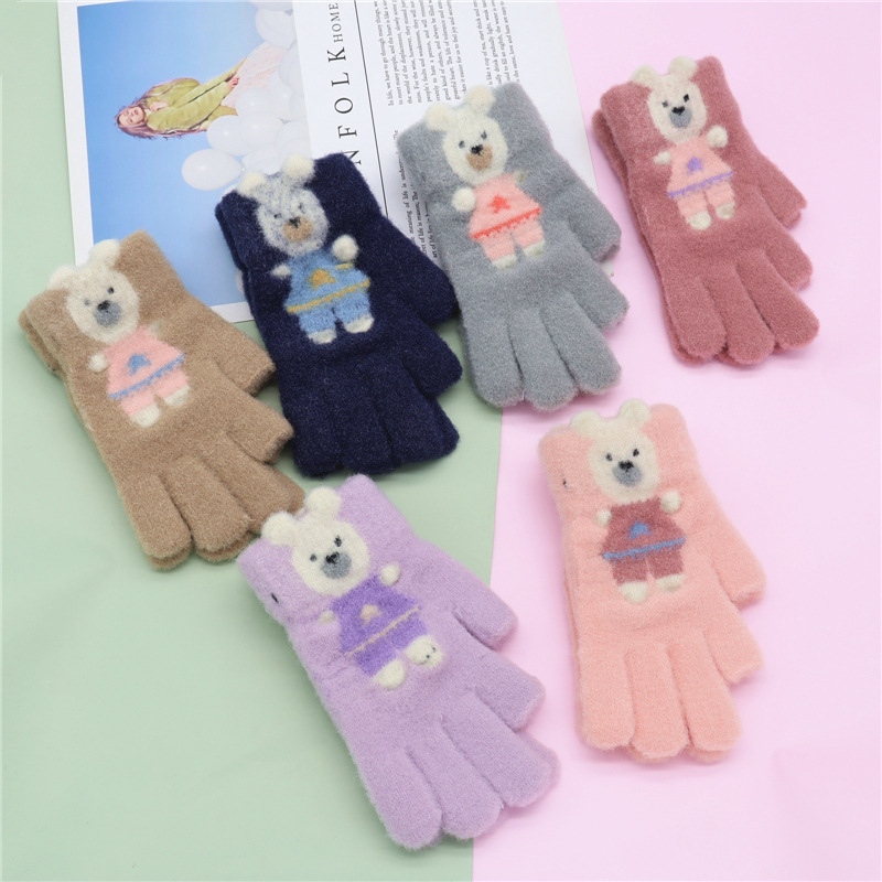 2024 겨울 3-8 세 어린이 이슬 두 손가락 장갑 크리스탈 벨벳 곰 학생 만화 따뜻한 장갑 도매