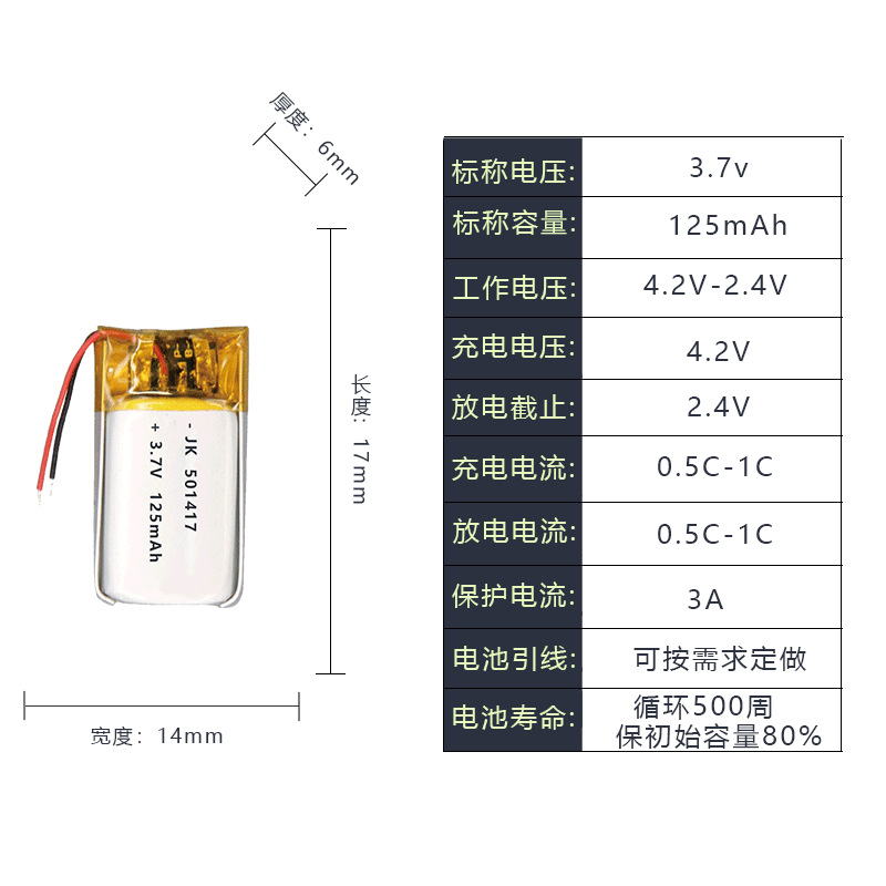 • 601417-125mAh 배터리 셀과 보호 보드 콘센트
