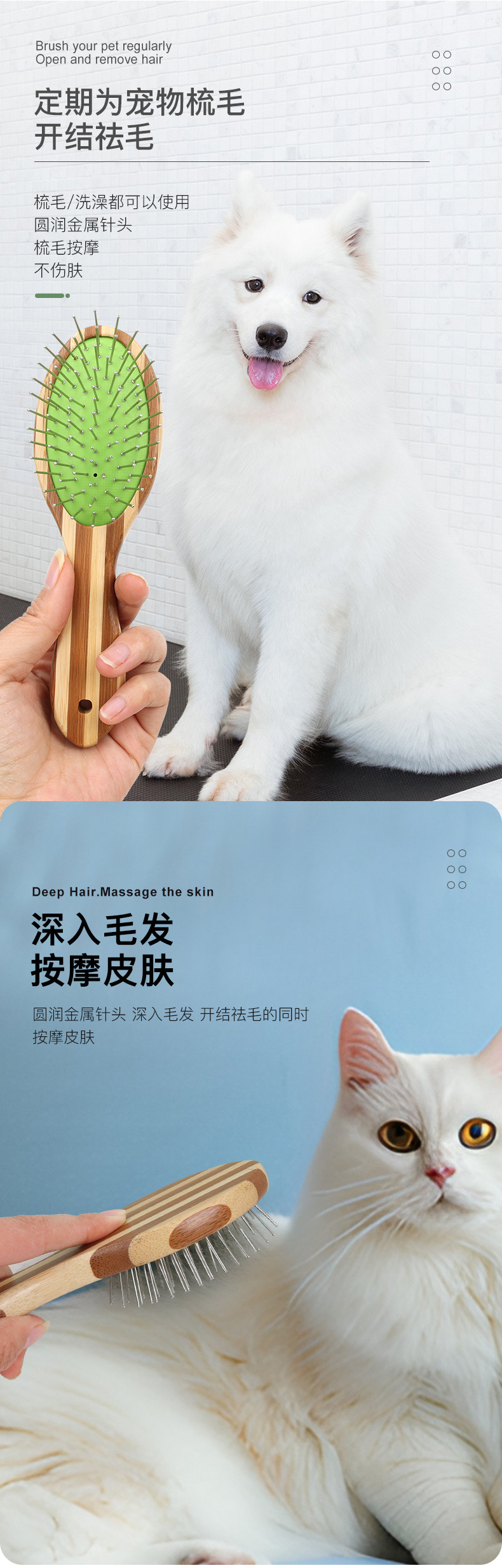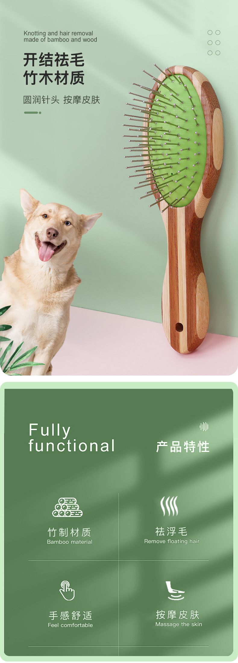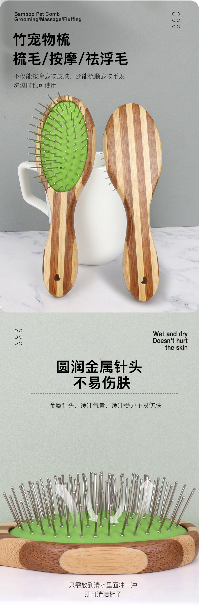 애완 동물 컬러 대나무 에어백 빗 개 마사지 빗 고양이 머리 빗 오픈 빗 목욕 빗 애완 동물 용품 도매스토어 가기