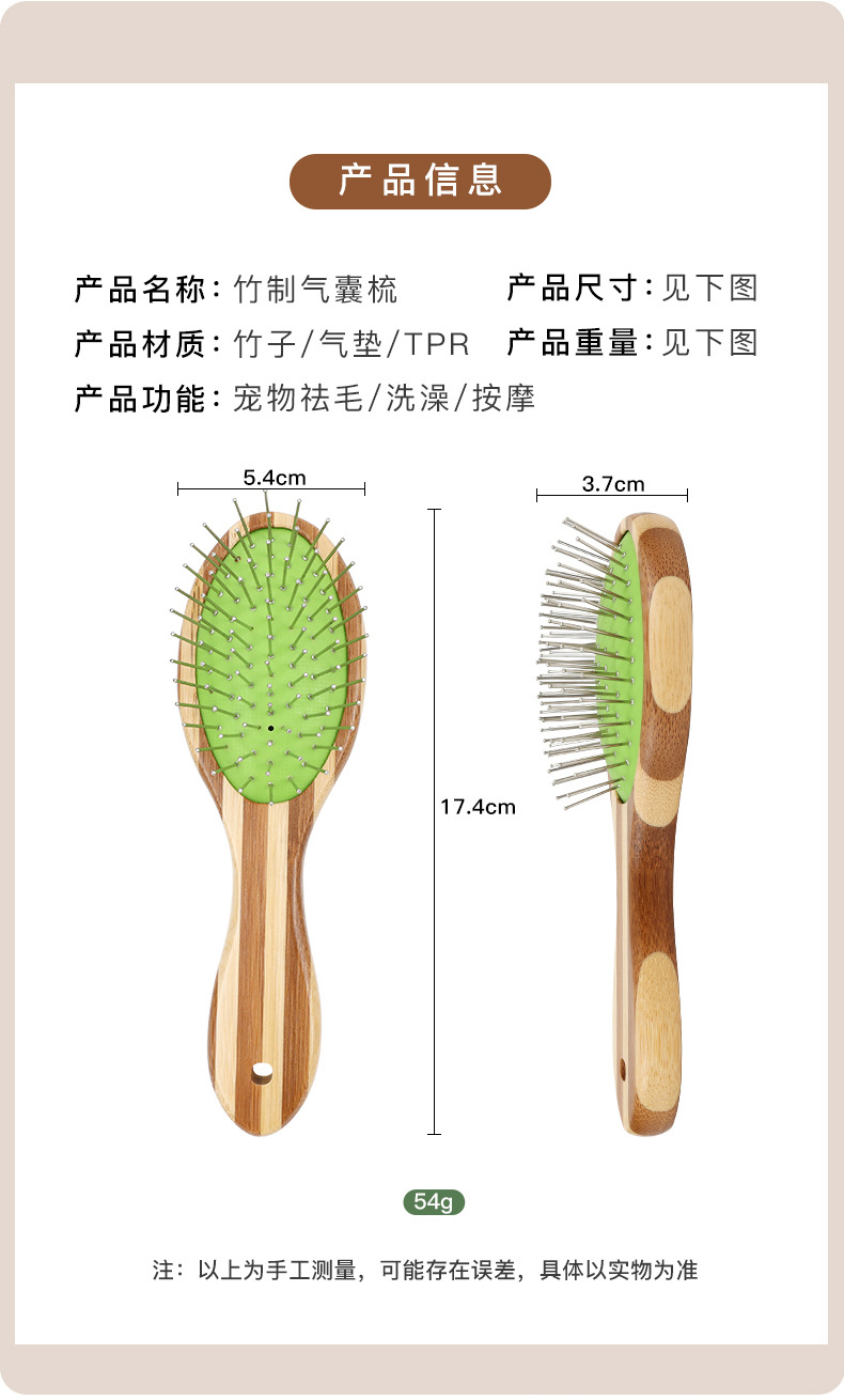 애완 동물 컬러 대나무 에어백 빗 개 마사지 빗 고양이 머리 빗 오픈 빗 목욕 빗 애완 동물 용품 도매