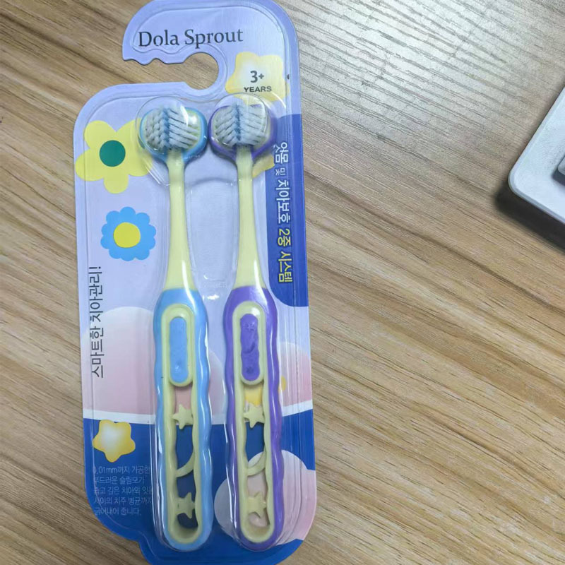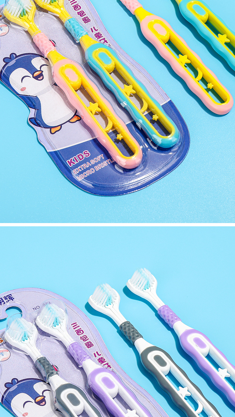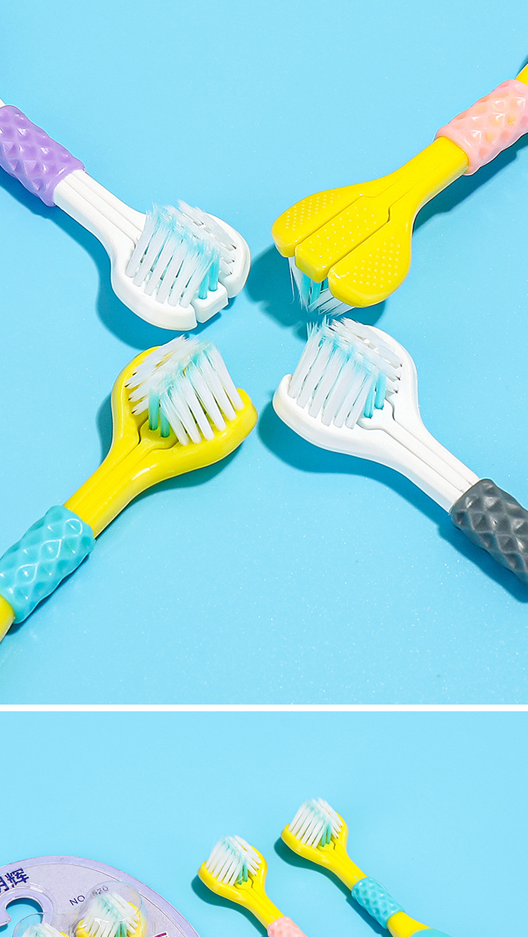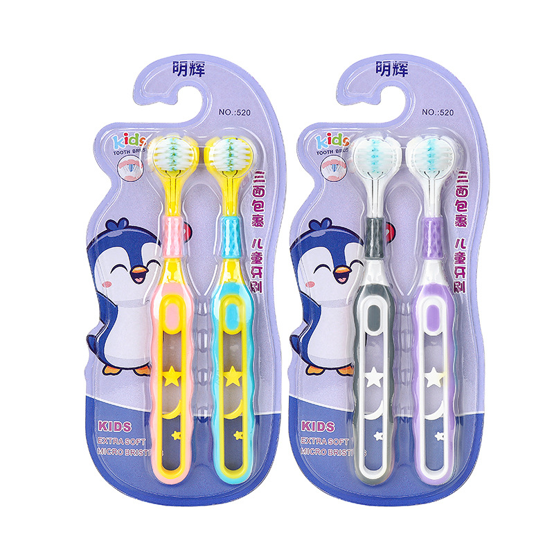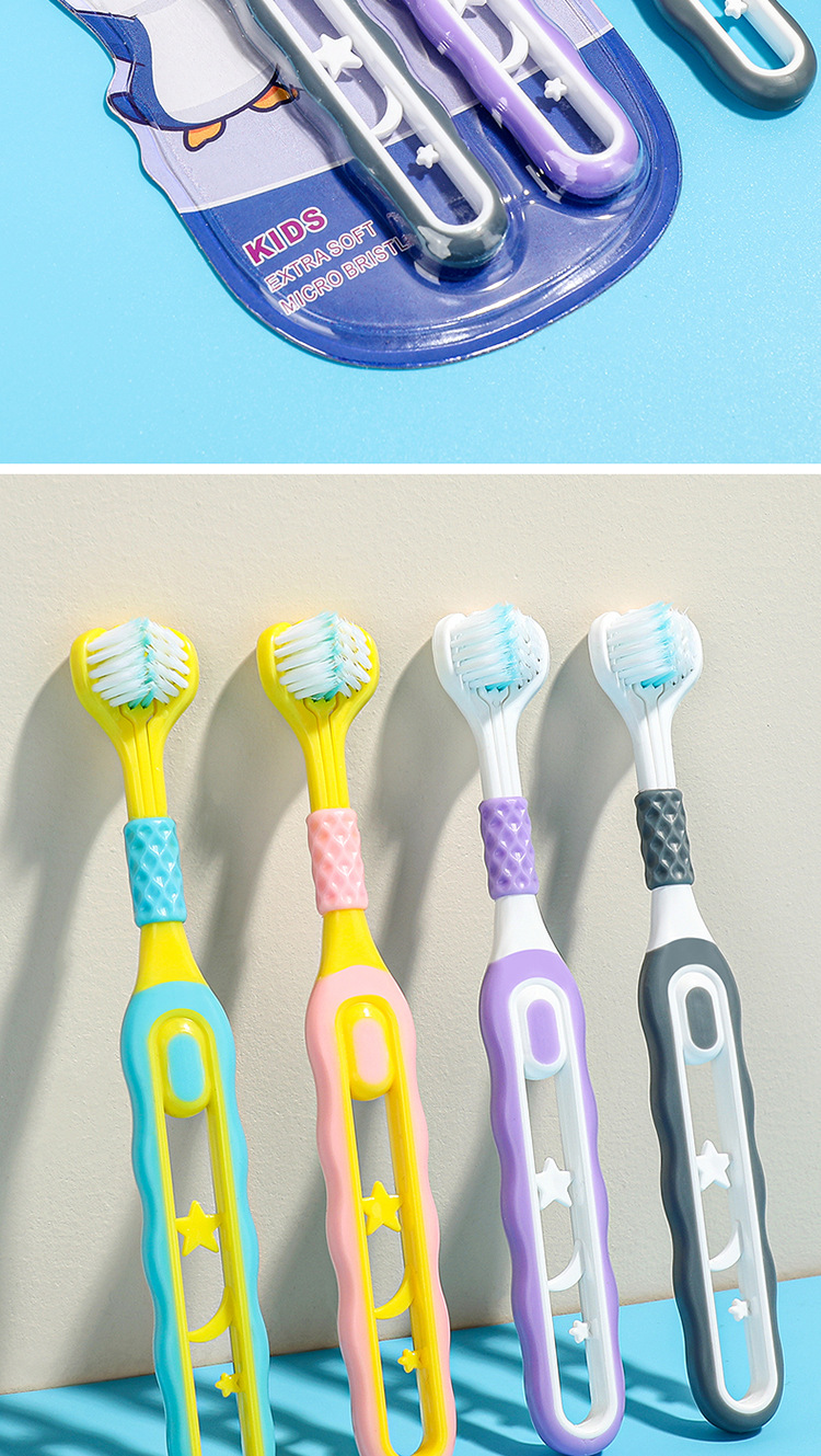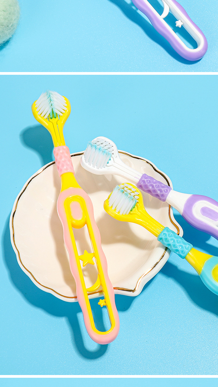 [2 팩] 어린이 부드러운 강모 칫솔 3 면 3 ~ 6-12 세 U 자형 3d 종합 패키지 청소 도매