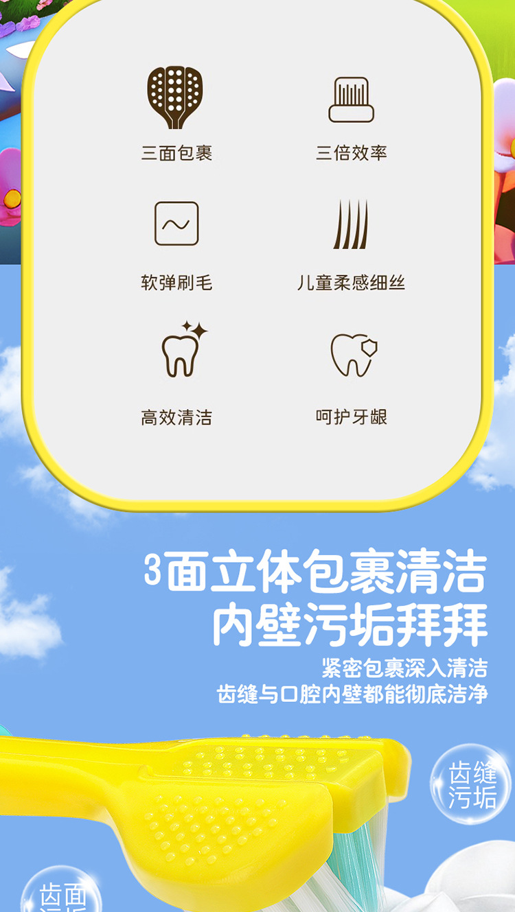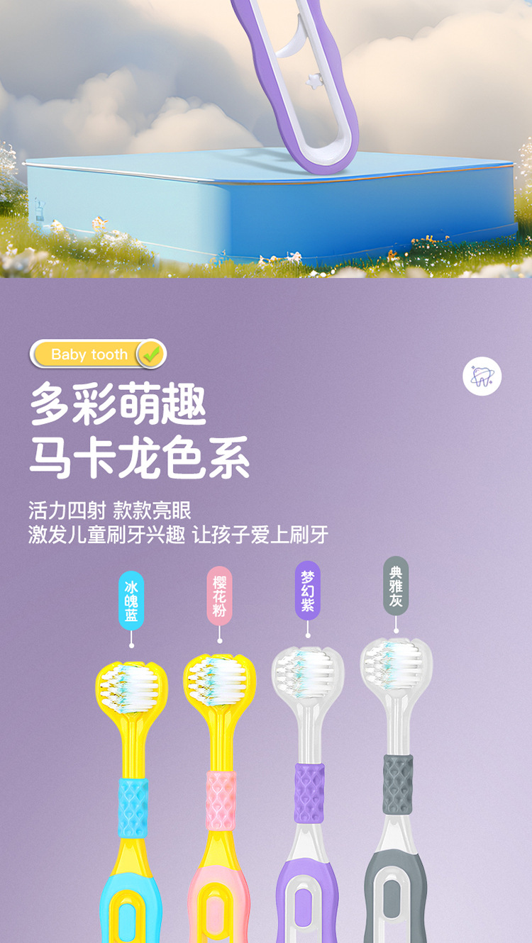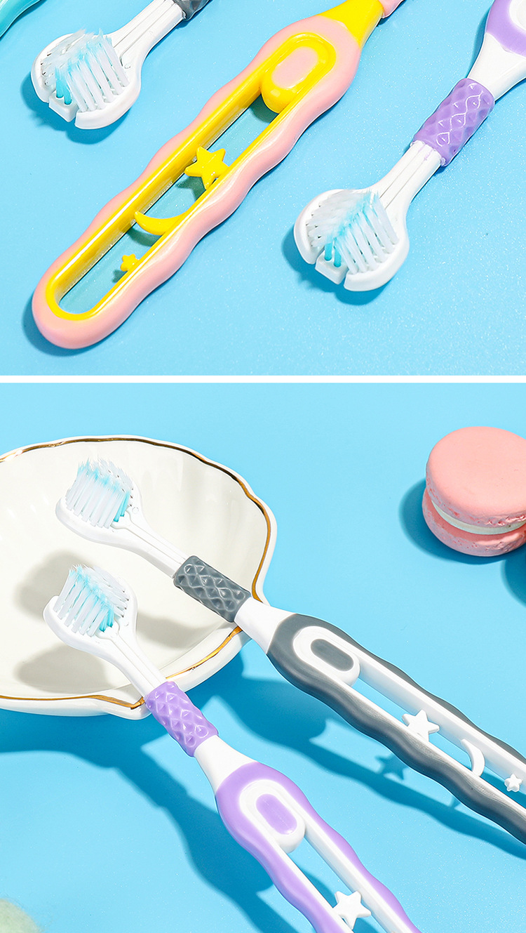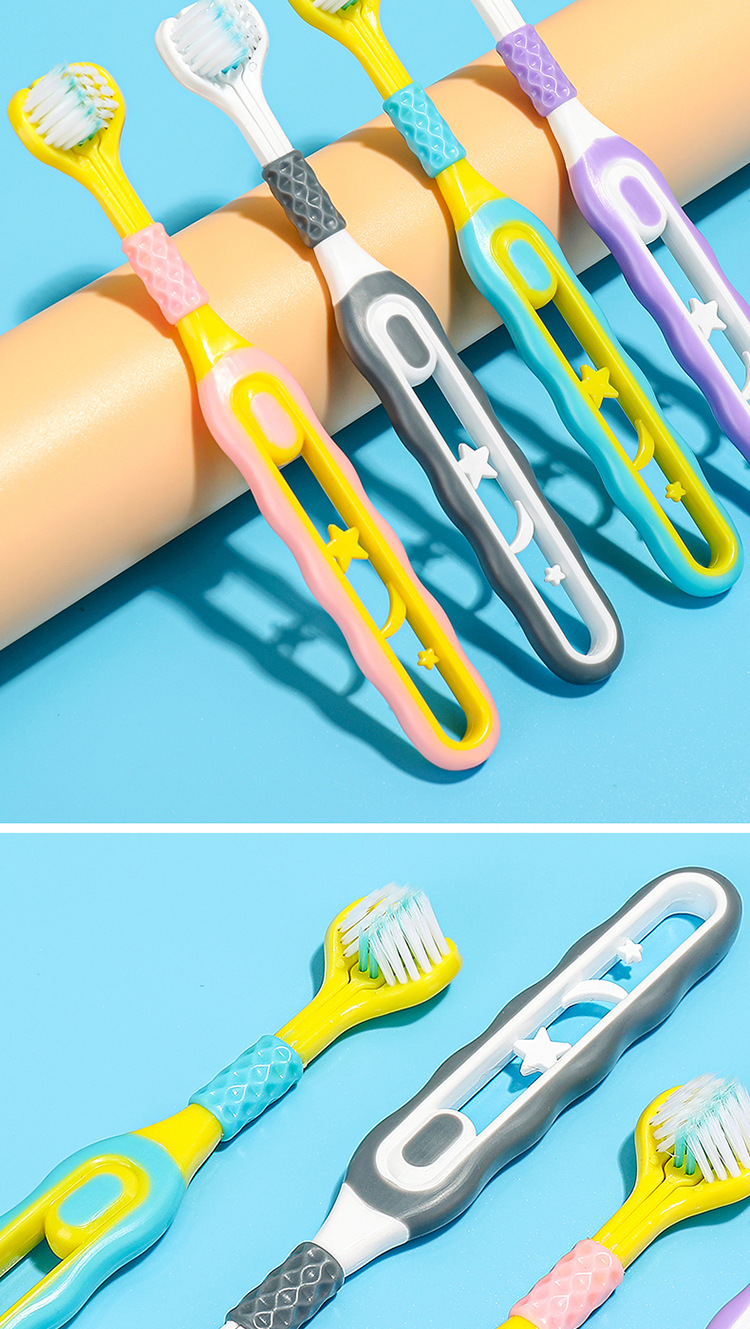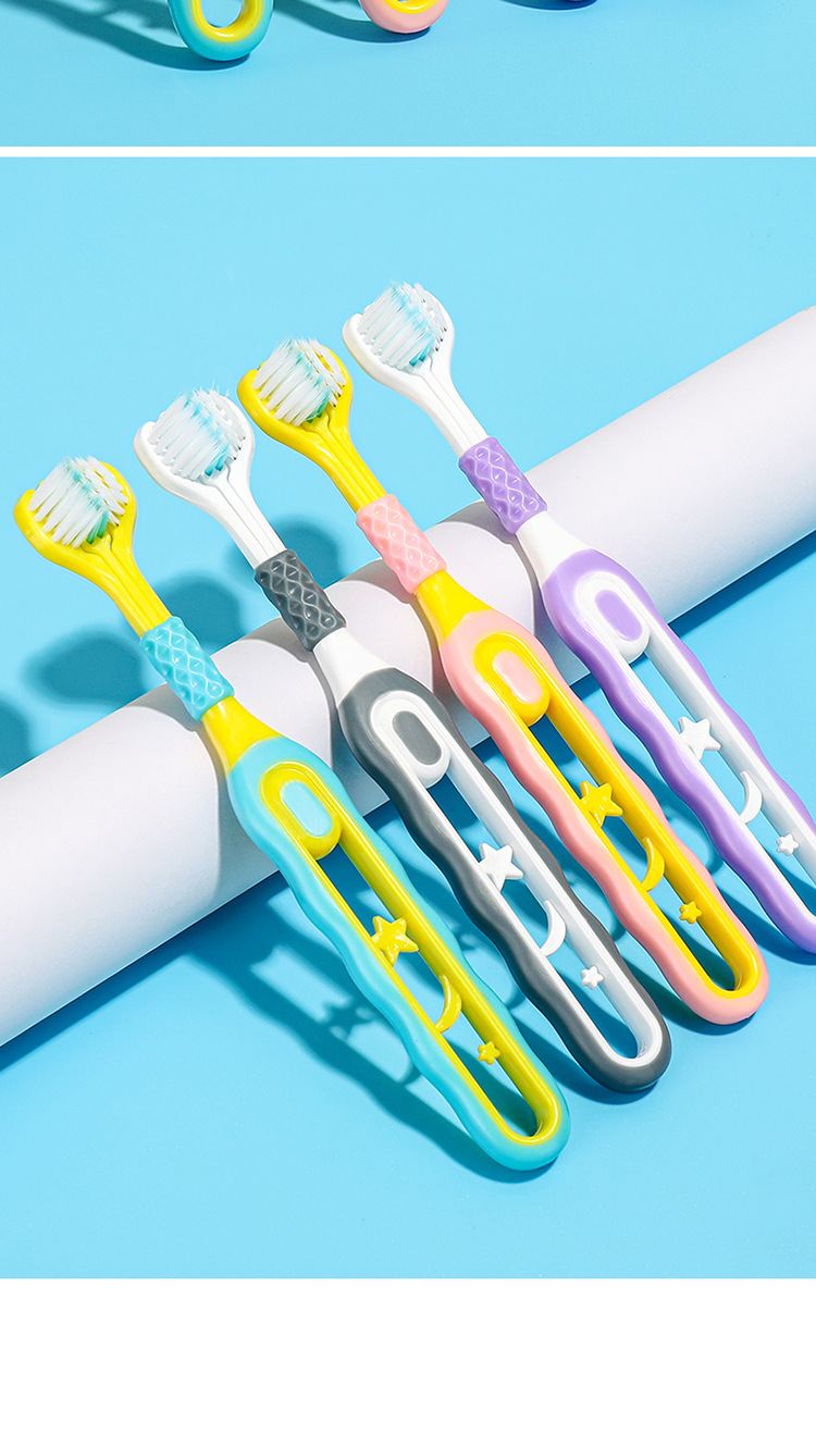 [2 팩] 어린이 부드러운 강모 칫솔 3 면 3 ~ 6-12 세 U 자형 3d 종합 패키지 청소 도매